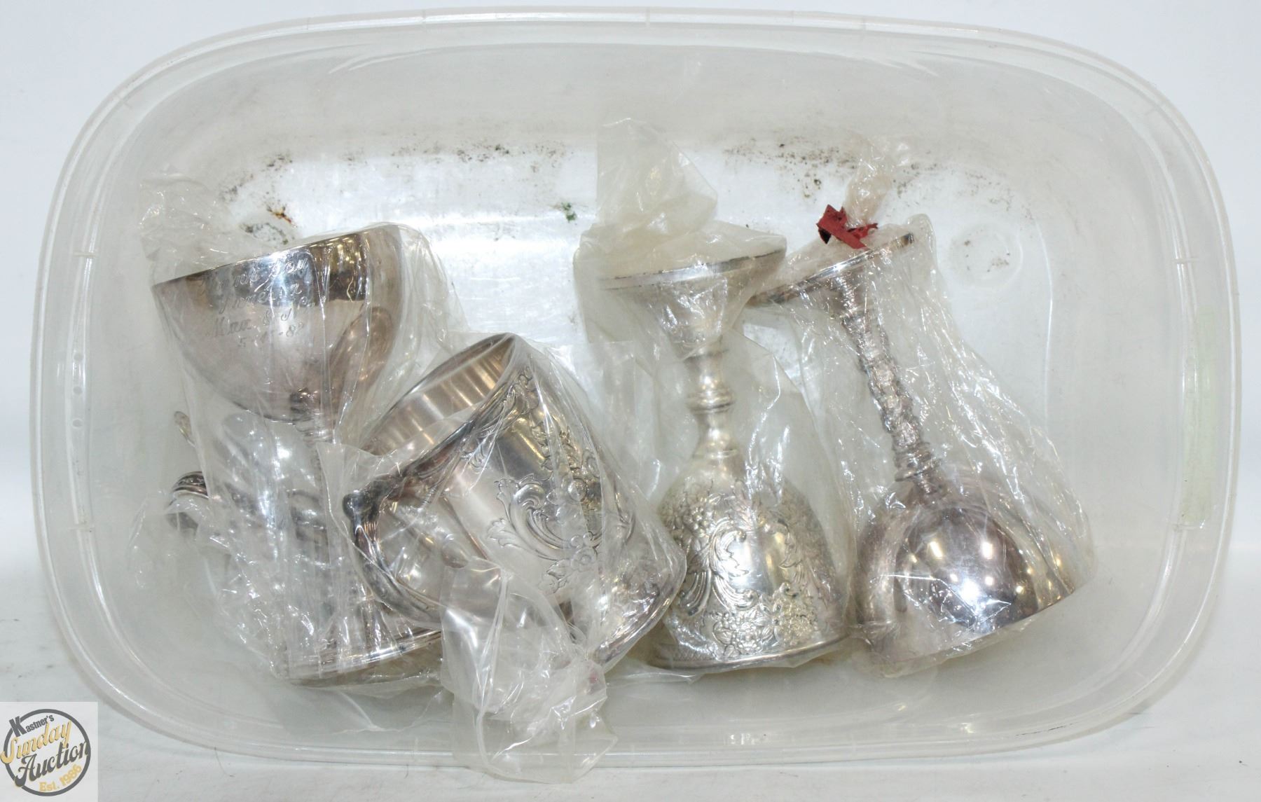 LOT OF SILVER PLATED CUPS AND SILVERWARE