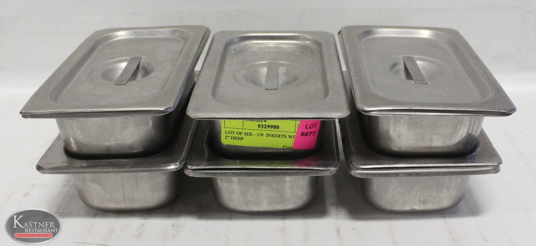 LOT OF SIX- -1/9 INSERTS WITH LIDS 2" DEEP