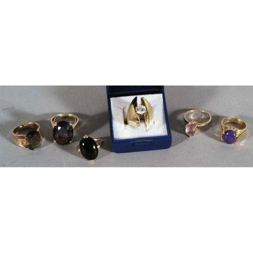 1 LOT OF SIX RINGS including amethyst and onyx some are gold CONDITION REPORT: excellent. PACKING AND SHIPPING (excluding insurance) by Fairfield Auction to points within the Continental U.S.A. and Canada (all other international must be handled by 3rd party shipper) $20.