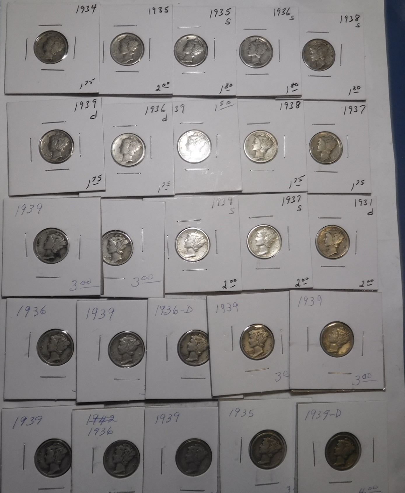 LOT OF SIXTY SEVEN MIXED BETTER DATE 1930'S MERCURY DIMES VG-VF (67 COINS)