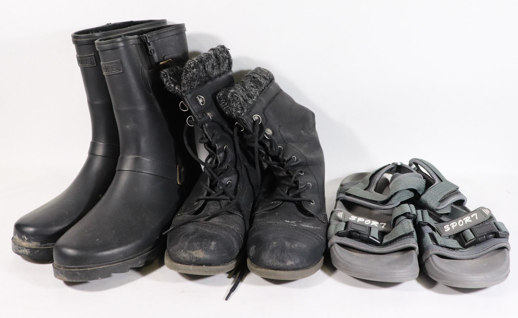 GUM BOOTS: GREAT TREAD. SANDALS: TREAD 95%. WINTER BOOTS: NOT AS GREAT BUT STILL FUNCTIONAL.