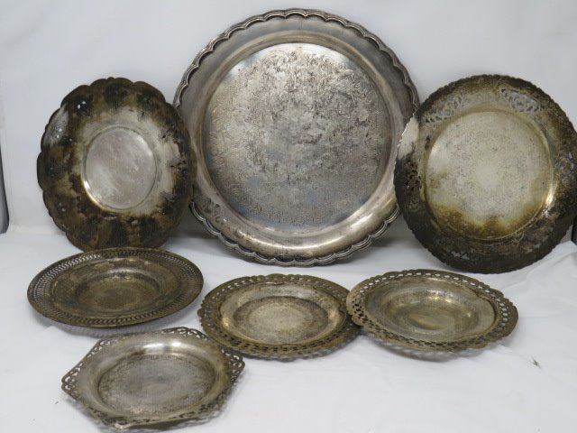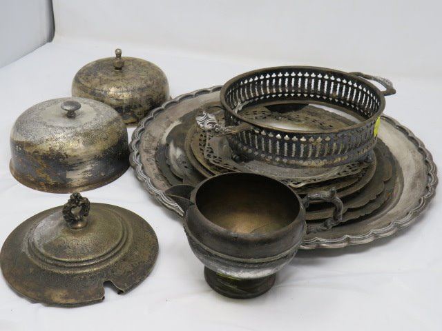 LOT OF SLIVER PLATED TRAYS, ETC