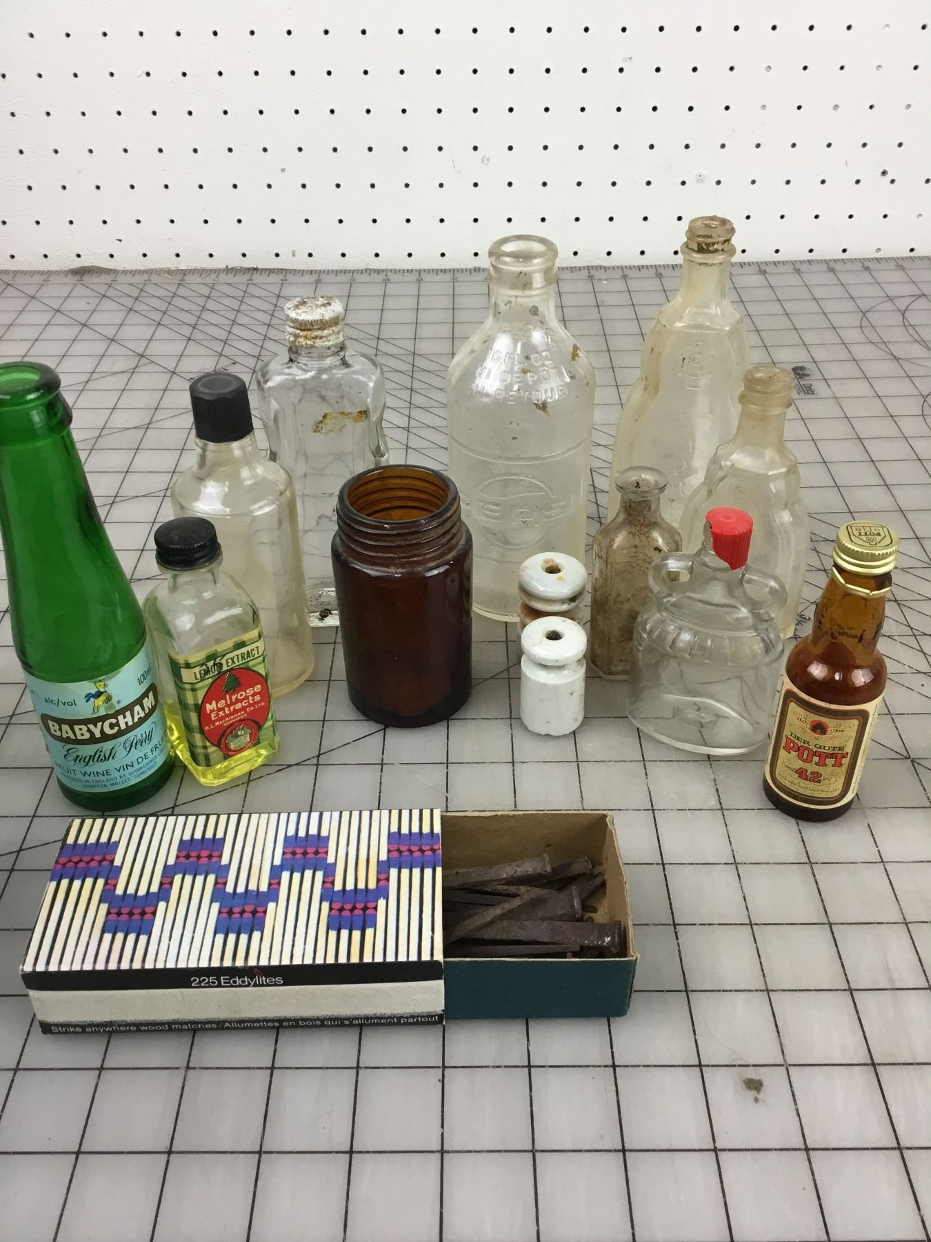 LOT OF SMALL VINTAGE BOTTLES EMBOSSED PEPSI EMPRESS ETC