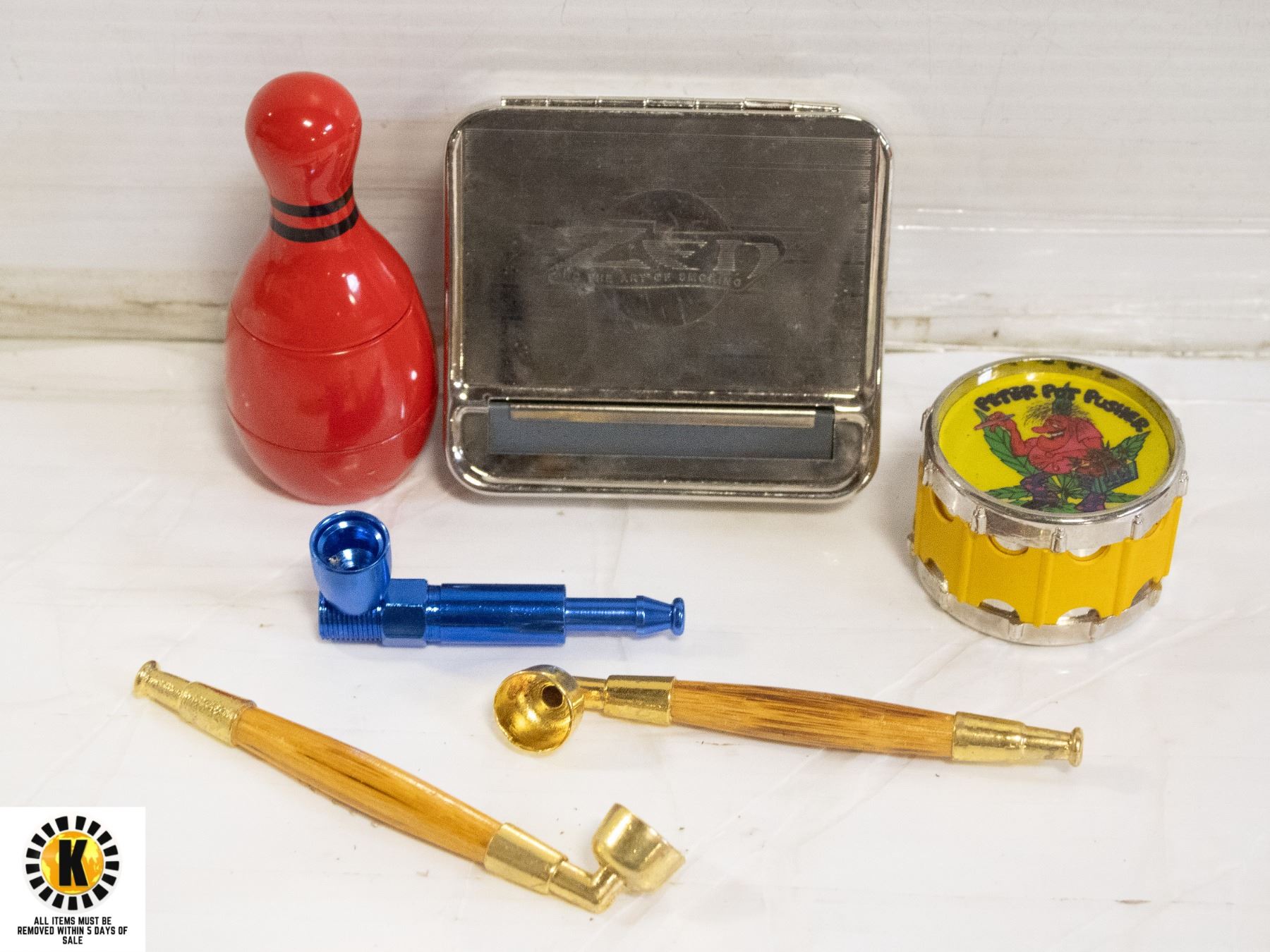 LOT OF SMOKING ACCESSORIES, GRINDERS , PIPES