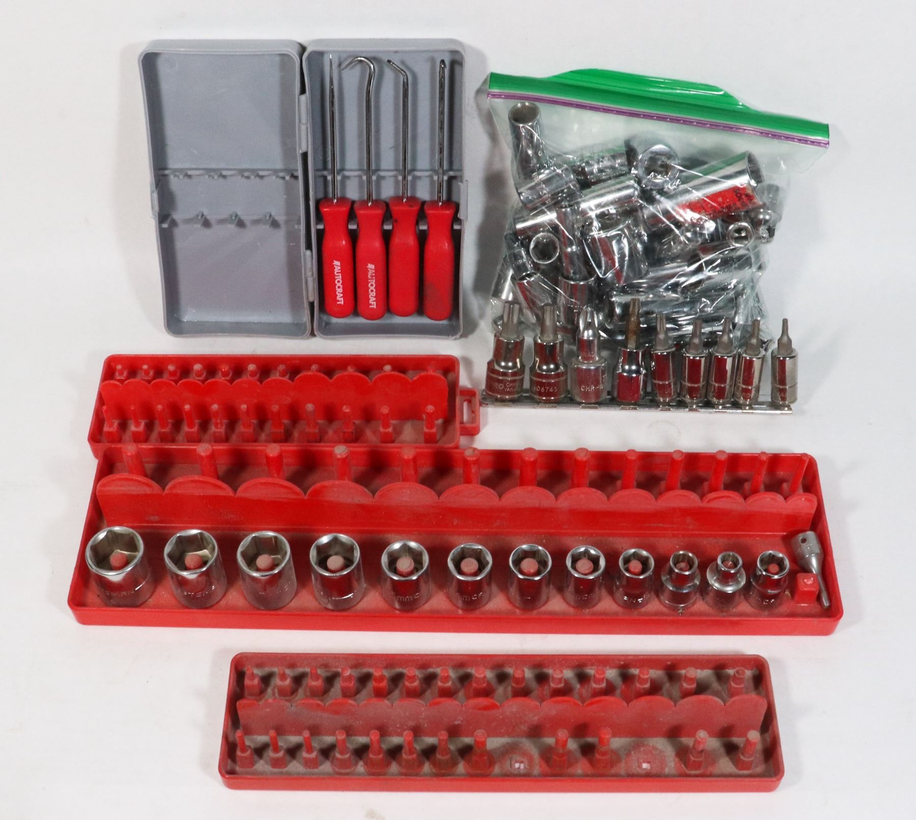 LOT OF SOCKETS, SOCKET HOLDERS, AND PICKS