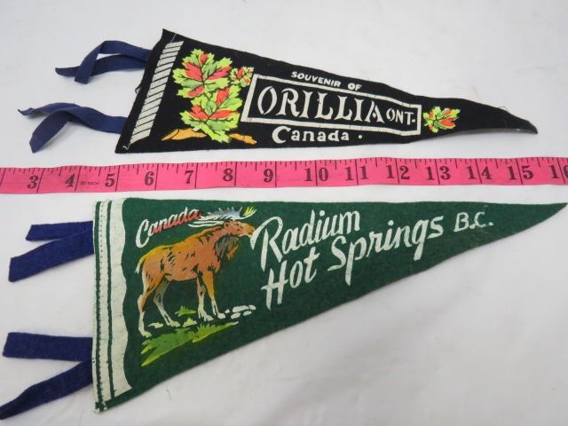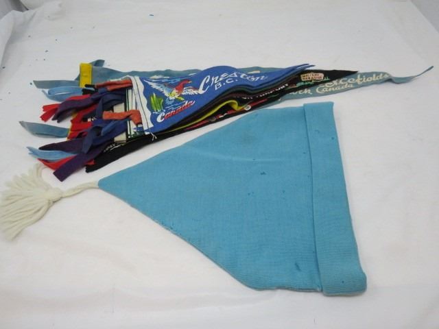 LOT OF SOUVENIR PENNANTS AND A CENTENNIAL CANADA TOUQUE (1950'S & 1960'S) *VINTAGE* (VARIOUS CITIES)