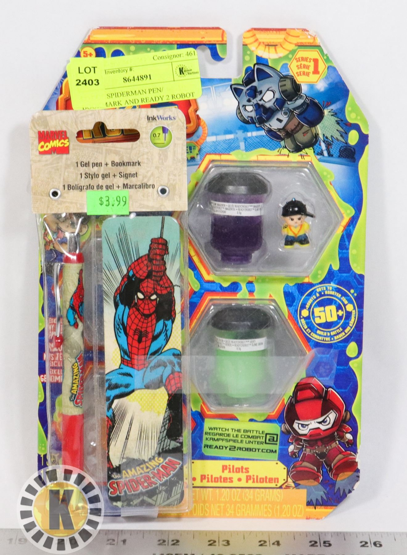 LOT OF SPIDERMAN PEN/ BOOKMARK AND READY 2 ROBOT