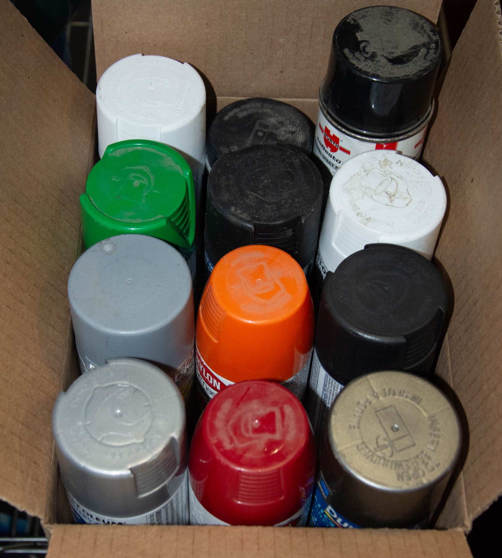 LOT OF SPRAY PAINT NO SHIPPING **ALL ITEMS MUST BE REMOVED BY 5PM SATURDAY, AUGUST 24th 2024. ALL REMAINING ITEMS WILL BE SUBJECT TO A $6.00 PER DAY STORAGE CHARGE. ANY ITEMS REMAINING AFTER MONDAY, SEPTEMBER 16TH 2024 WILL BE CONSIDERED FORFEITED. NO REFUNDS WILL BE ISSUED FOR FORFEITED ITEMS. TO SCHEDULE A PICK UP APPOINTMENT CLICK HERE