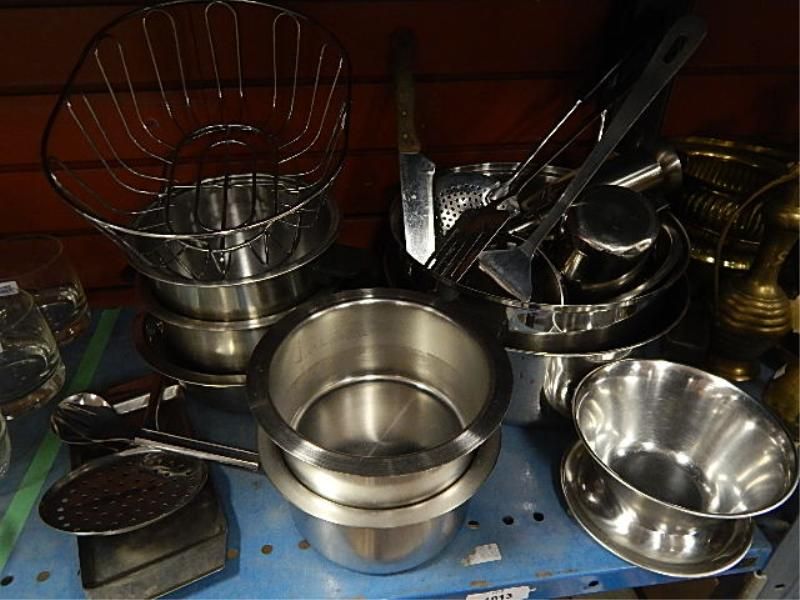 LOT OF STAINLESS STEEL KITCHENWARE & UTENSILS