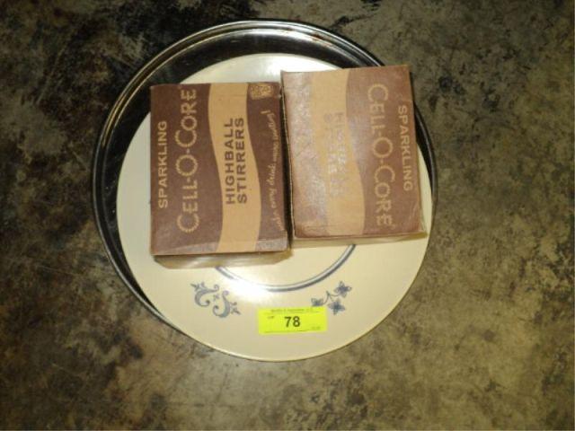 LOT OF STIRRERS & MISC PLATES, SERVING TRAY