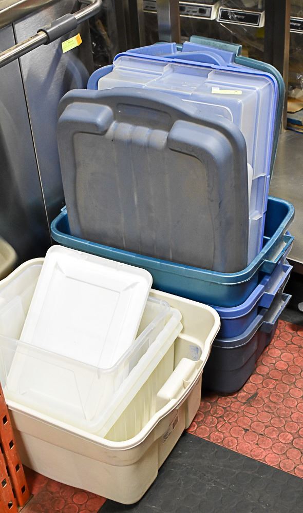 LOT OF STORAGE TOTES 8PC W/ LIDS