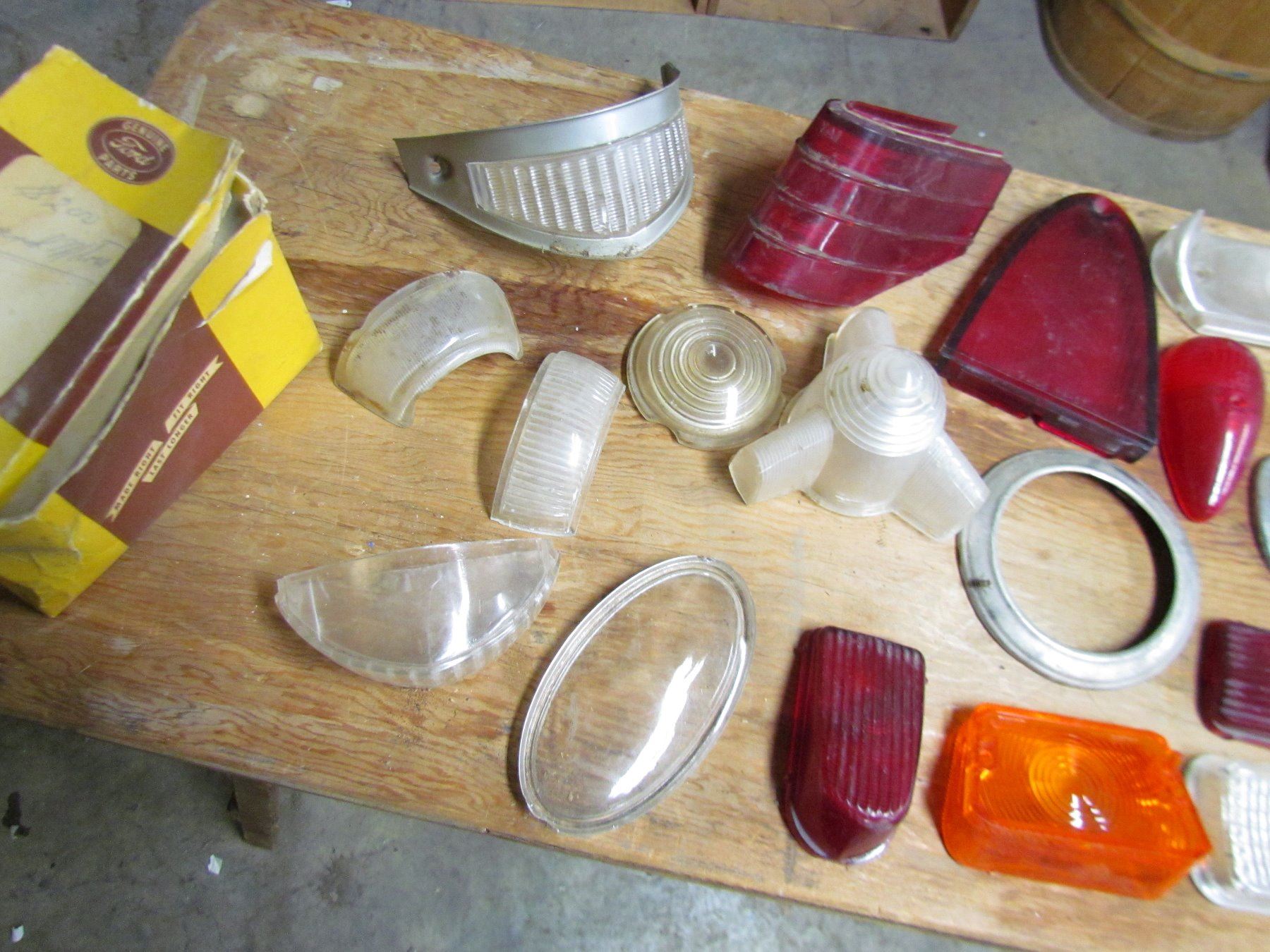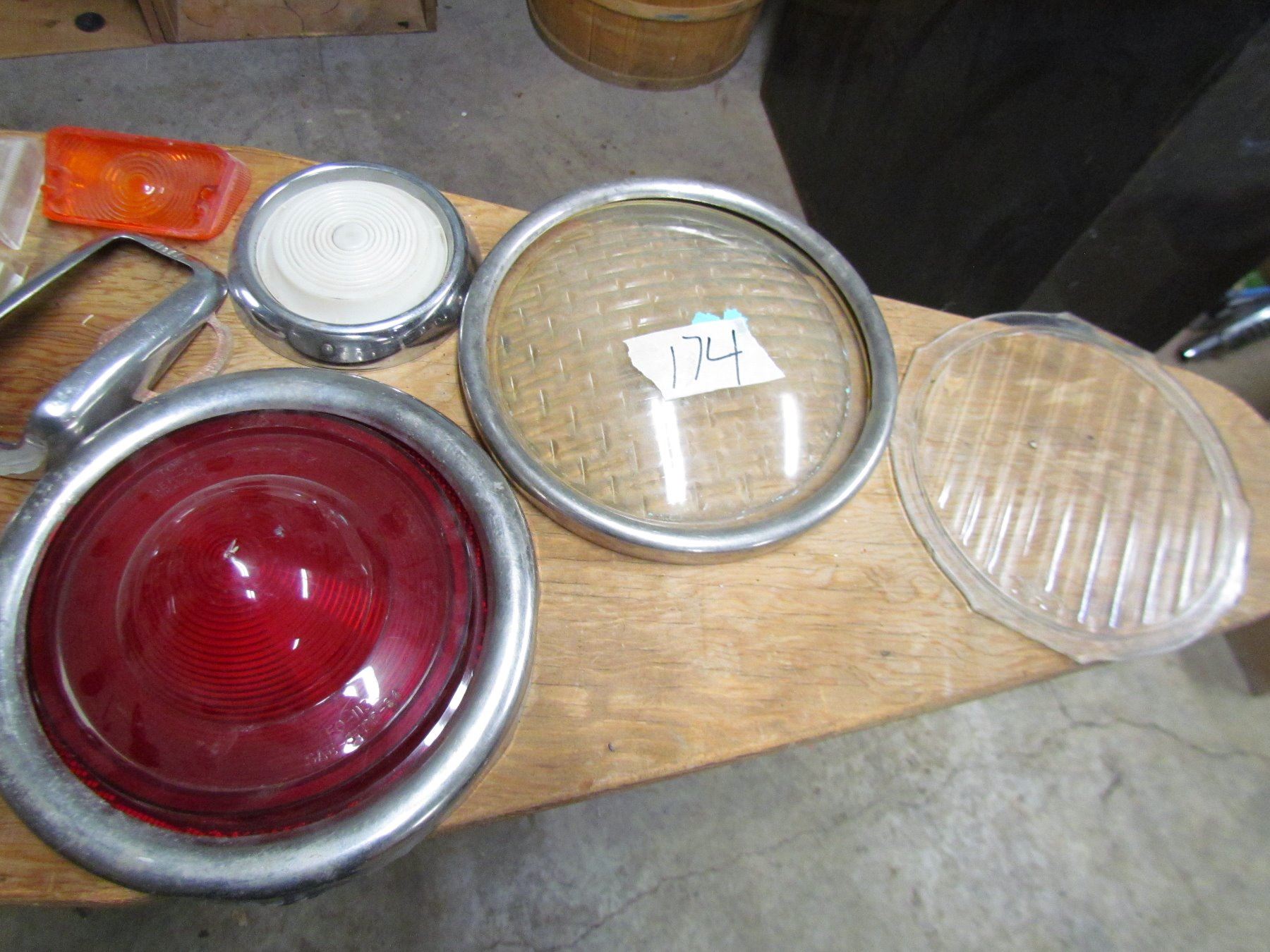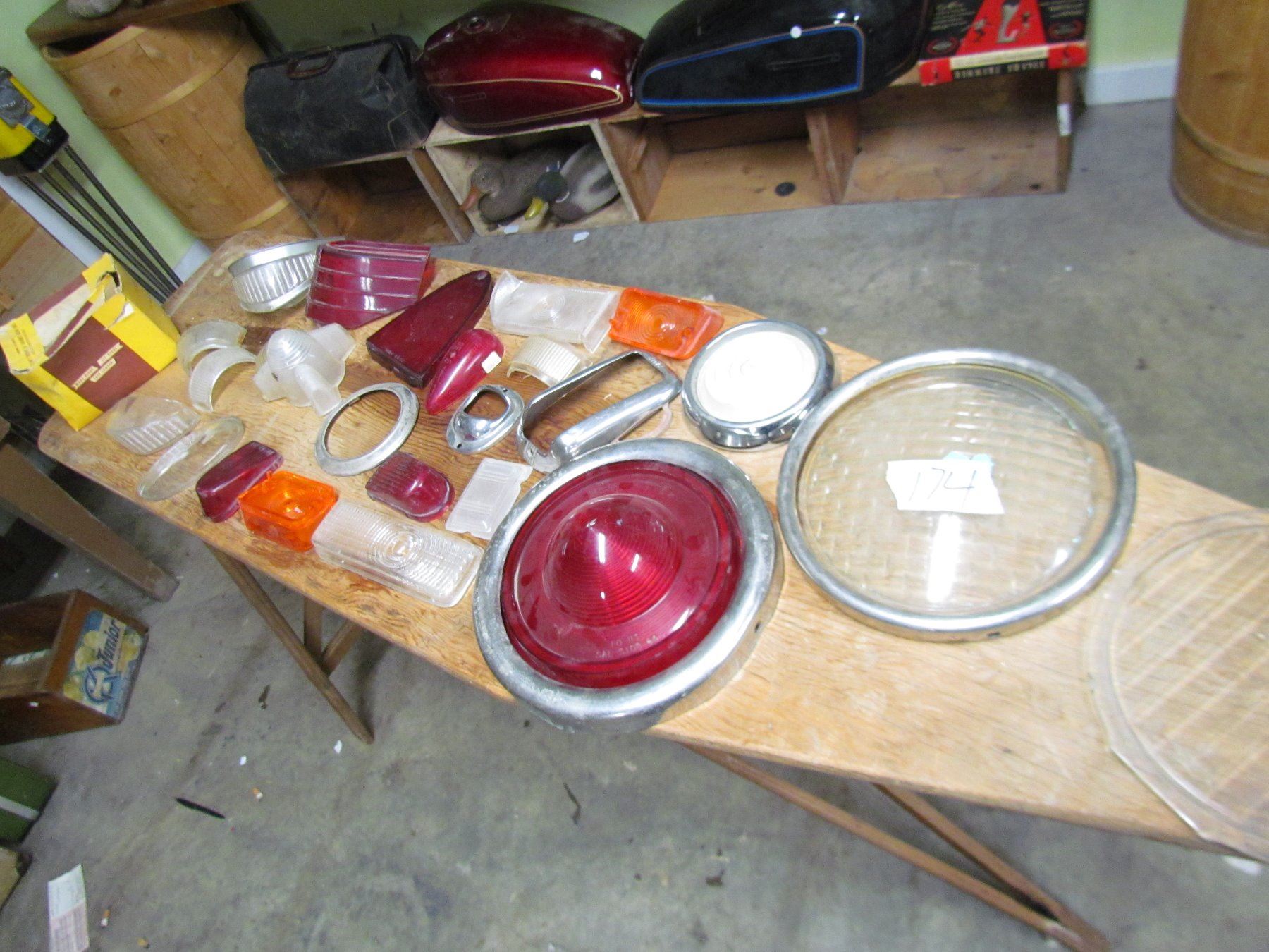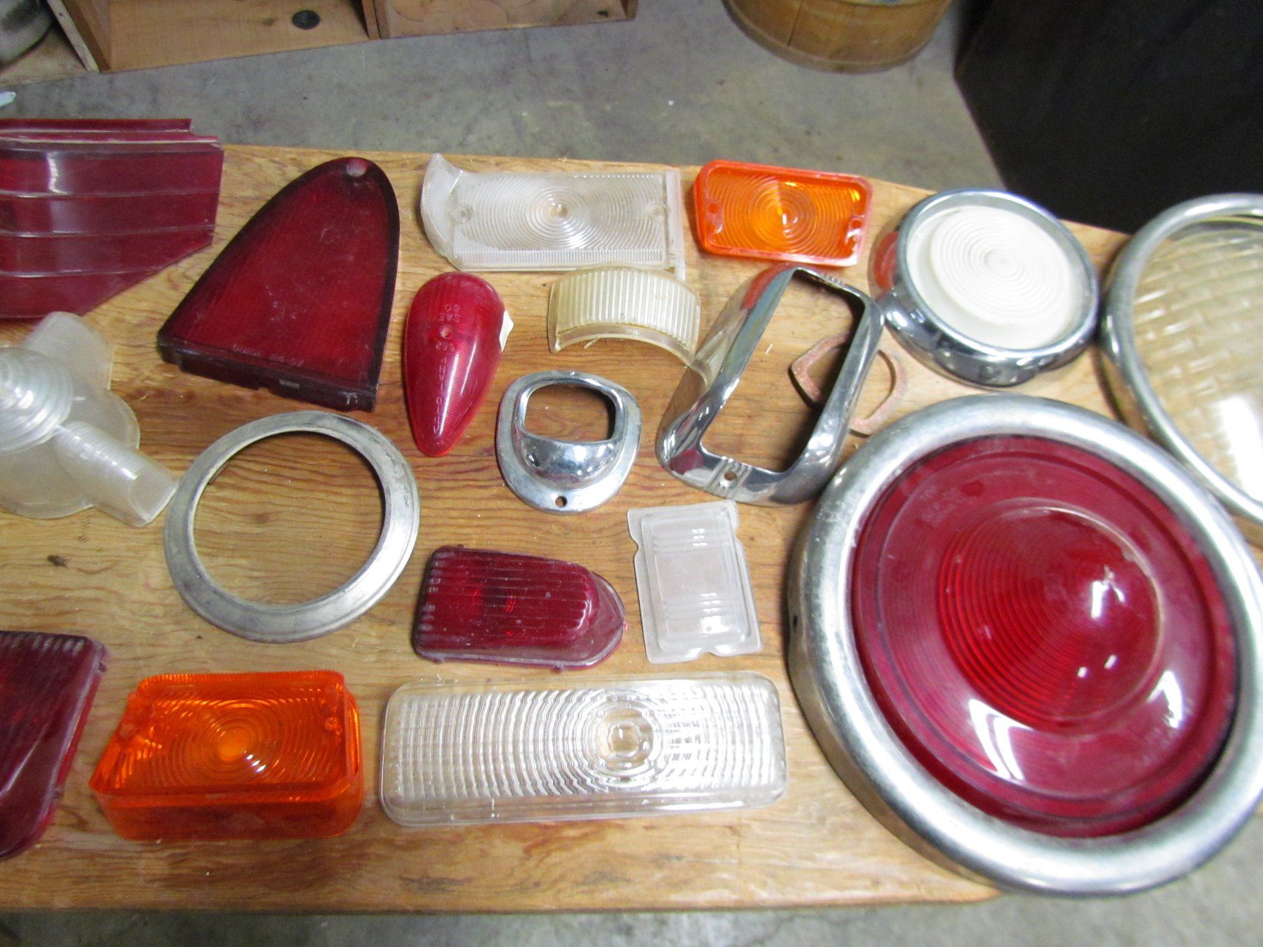 LOT OF TAIL LIGHTS & HEAD LIGHTS (GLASS, CHROME & PLASTIC PCS)