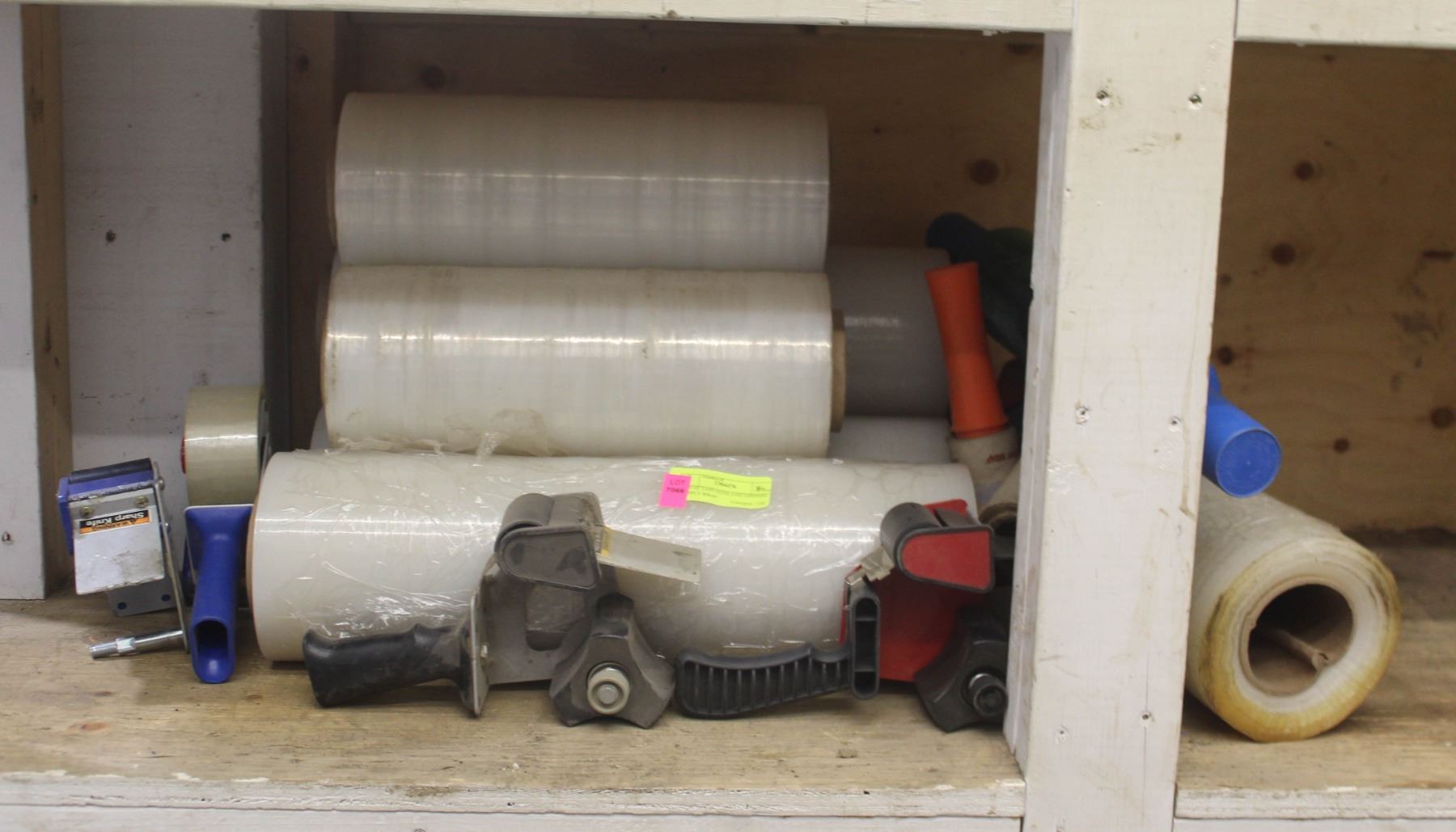 LOT OF TAPE GUNS AND SHIPPERS SUPPLY WRAP
