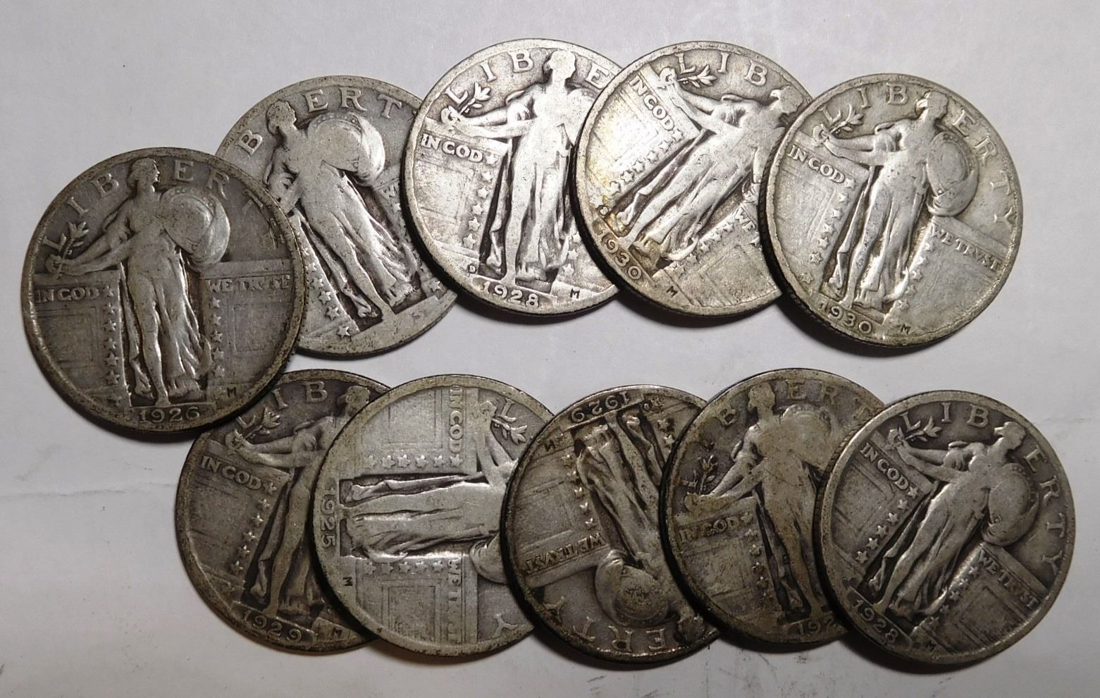 LOT OF TEN MIXED DATE STANDING LIBERTY QUARTERS GOOD-FINE (10 COINS)