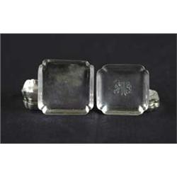 Lot 311 LOT OF TEN STERLING ASHTRAYSLOT OF TEN STERLING ASHTRAYS. Square with crimped corners. Four are 3” sq. marked “England” and hallmarked “London, 1956 C. J. V. Co.”. Not monogrammed. Six 2-3/4” x 2-3/4” “Black Starr & Gorham” ashtrays with central monogram “PJW”. WEIGHT: 15 tr. oz. CONDITION: Very good. 12-101 (150-250)