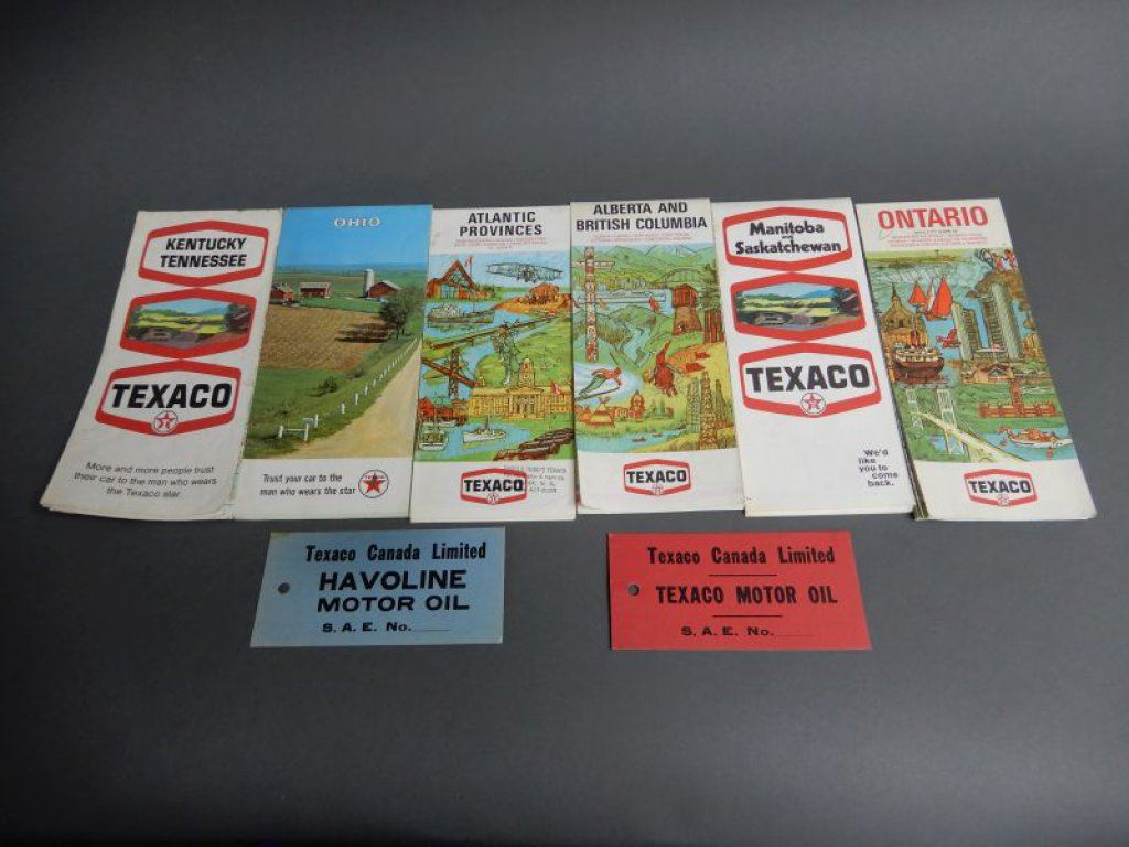 6 ROAD MAPS - ONT., MANITOBA\& SASKATCHEWAN, ATLANTIC PROVINCES, ALBERTA & BRITISH COLUMBIA OHIO, KENTUCKY TENNESSEE 2 CARDBOARD OIL DRUM TAGS