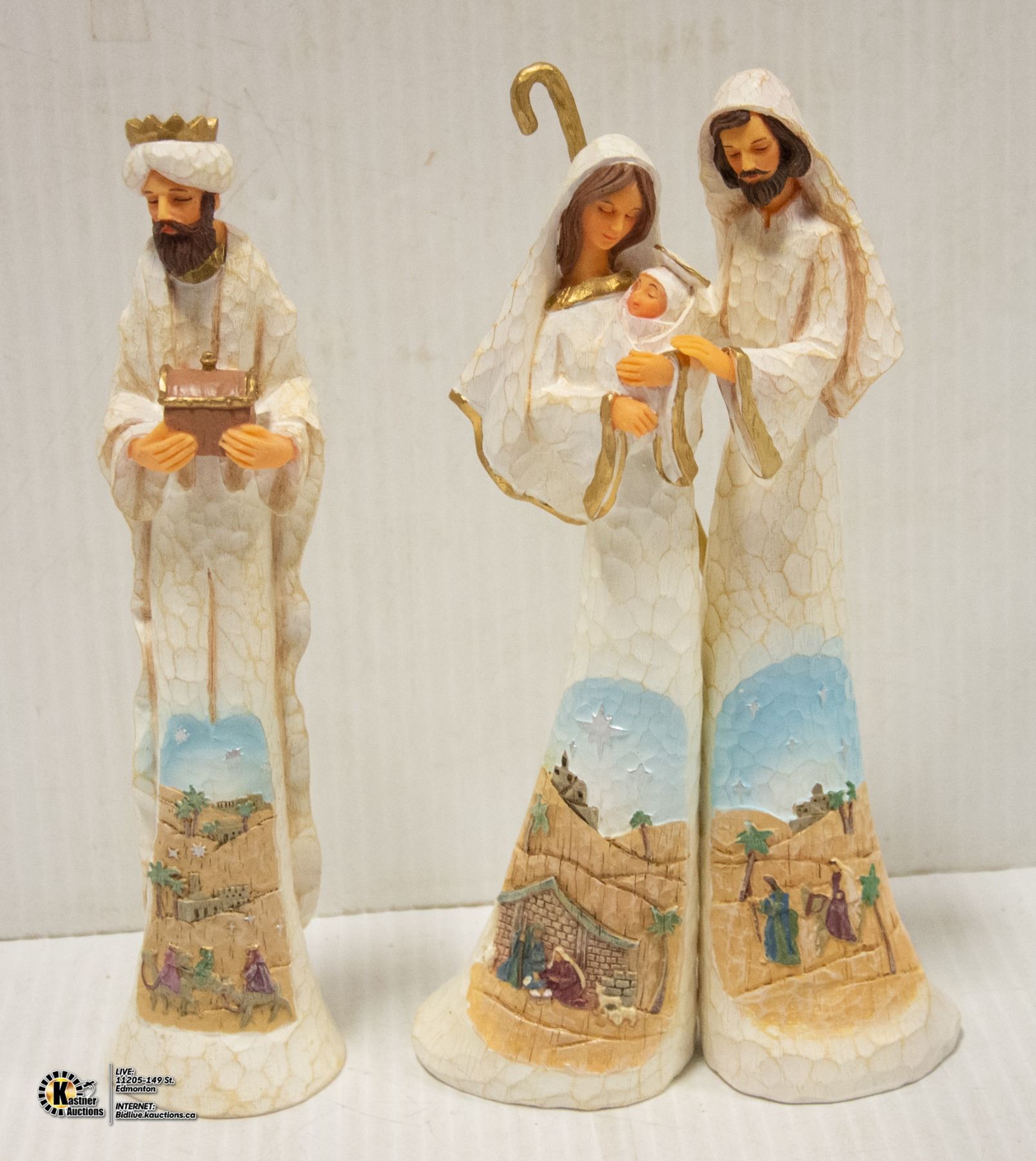 BRAND NEW, BOXED SCULPTURES: LOVING MARY AND BABY JESUS, ADORING JOSEPH, AND KING GASPAR