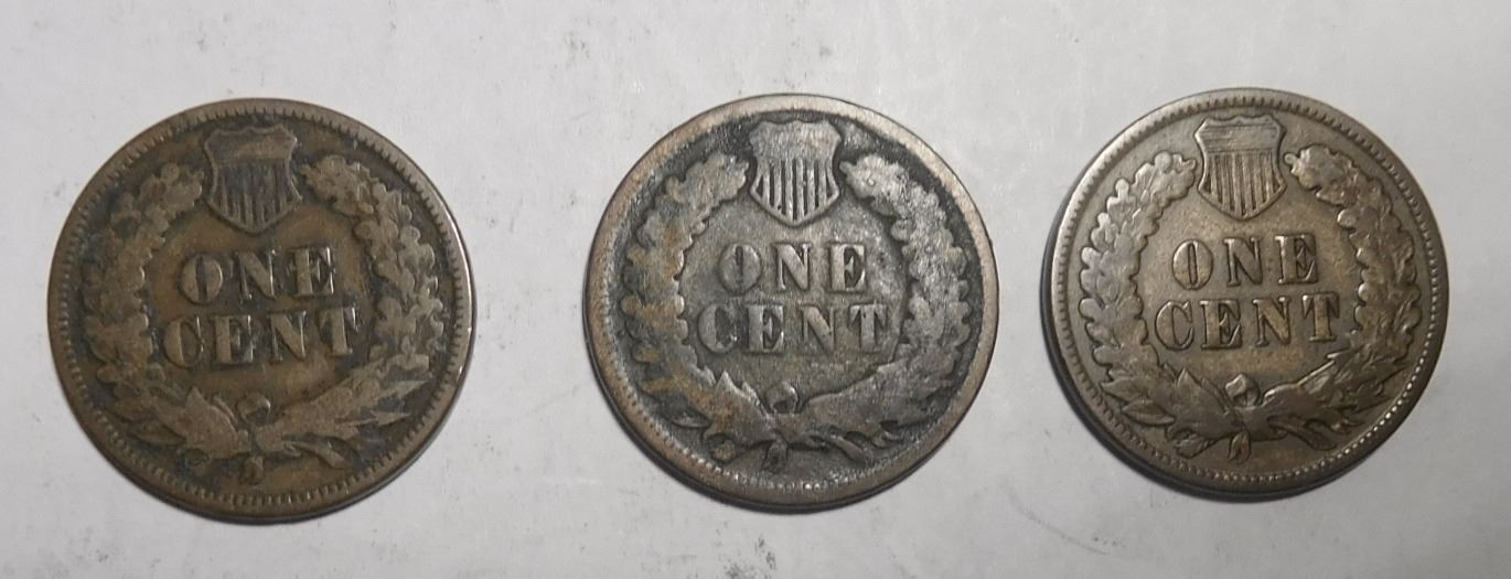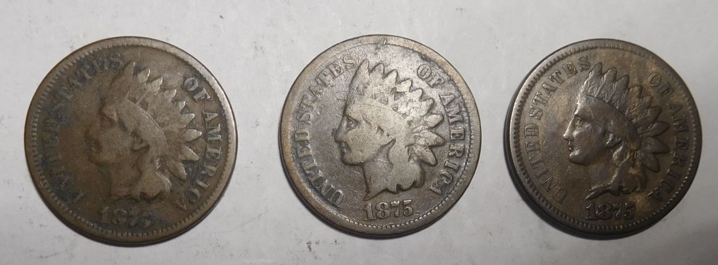 LOT OF THREE 1875 INDIAN HEAD CENTS G/VG (3 COINS)
