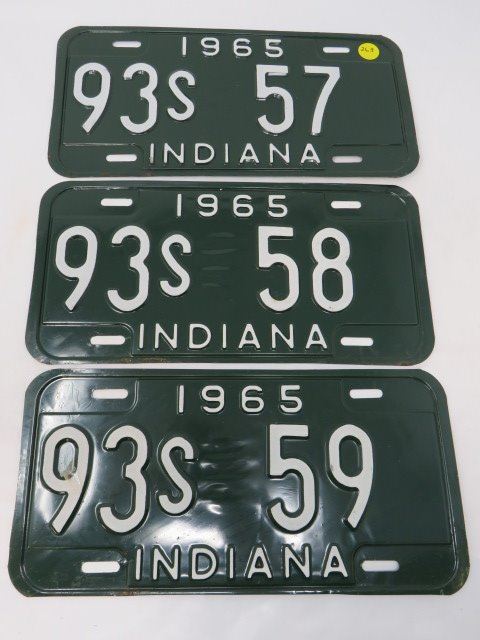 LOT OF THREE 1965 INDIANA CONSECUTIVE NUMBER PLATES (NOS)
