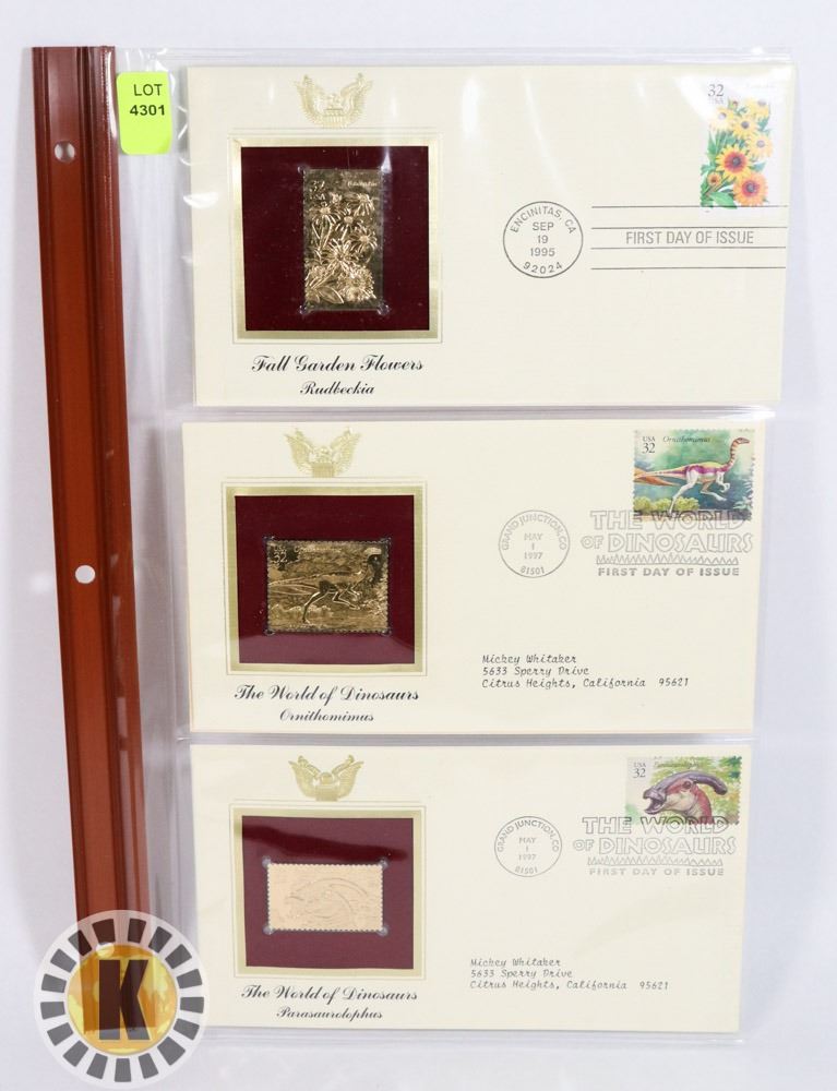 LOT OF THREE 22K GOLD REPLICA STAMPS WITH FIRST