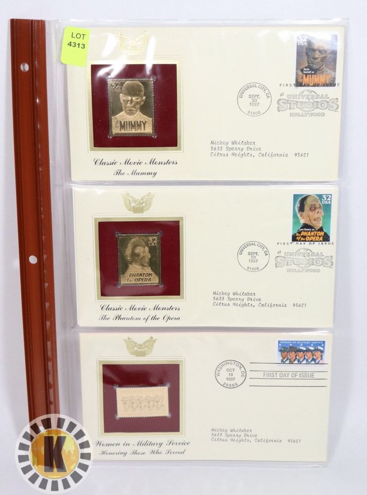 LOT OF THREE 22K GOLD REPLICA STAMPS WITH FIRST