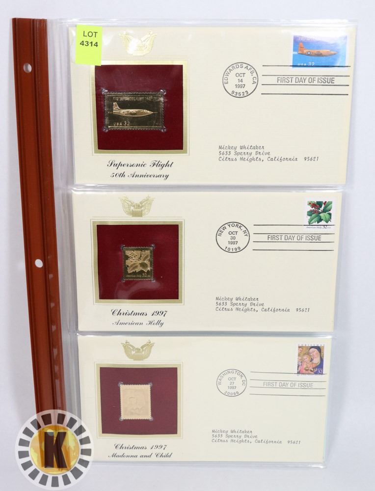 LOT OF THREE 22K GOLD REPLICA STAMPS WITH FIRST
