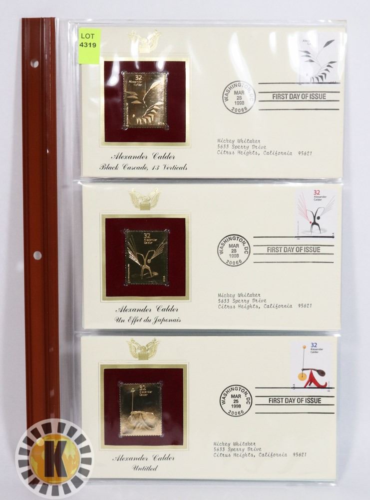LOT OF THREE 22K GOLD REPLICA STAMPS WITH FIRST