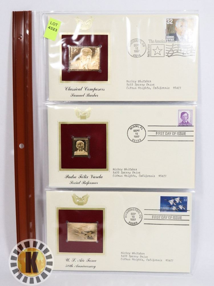 LOT OF THREE 22K GOLD REPLICA STAMPS WITH FIRST