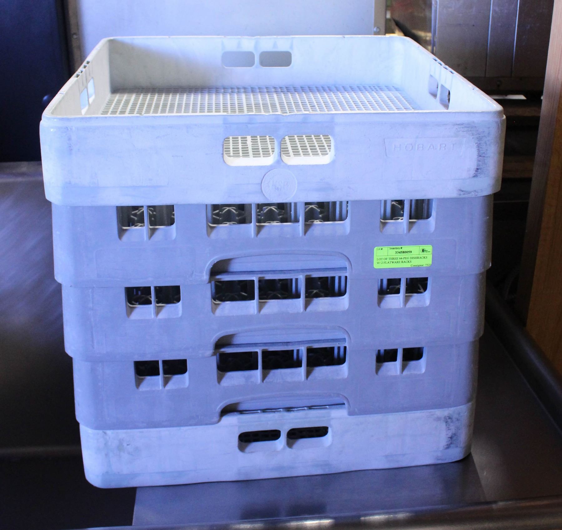LOT OF THREE 64-PEG DISHRACKS W/ 2 FLATWARE RACKS
