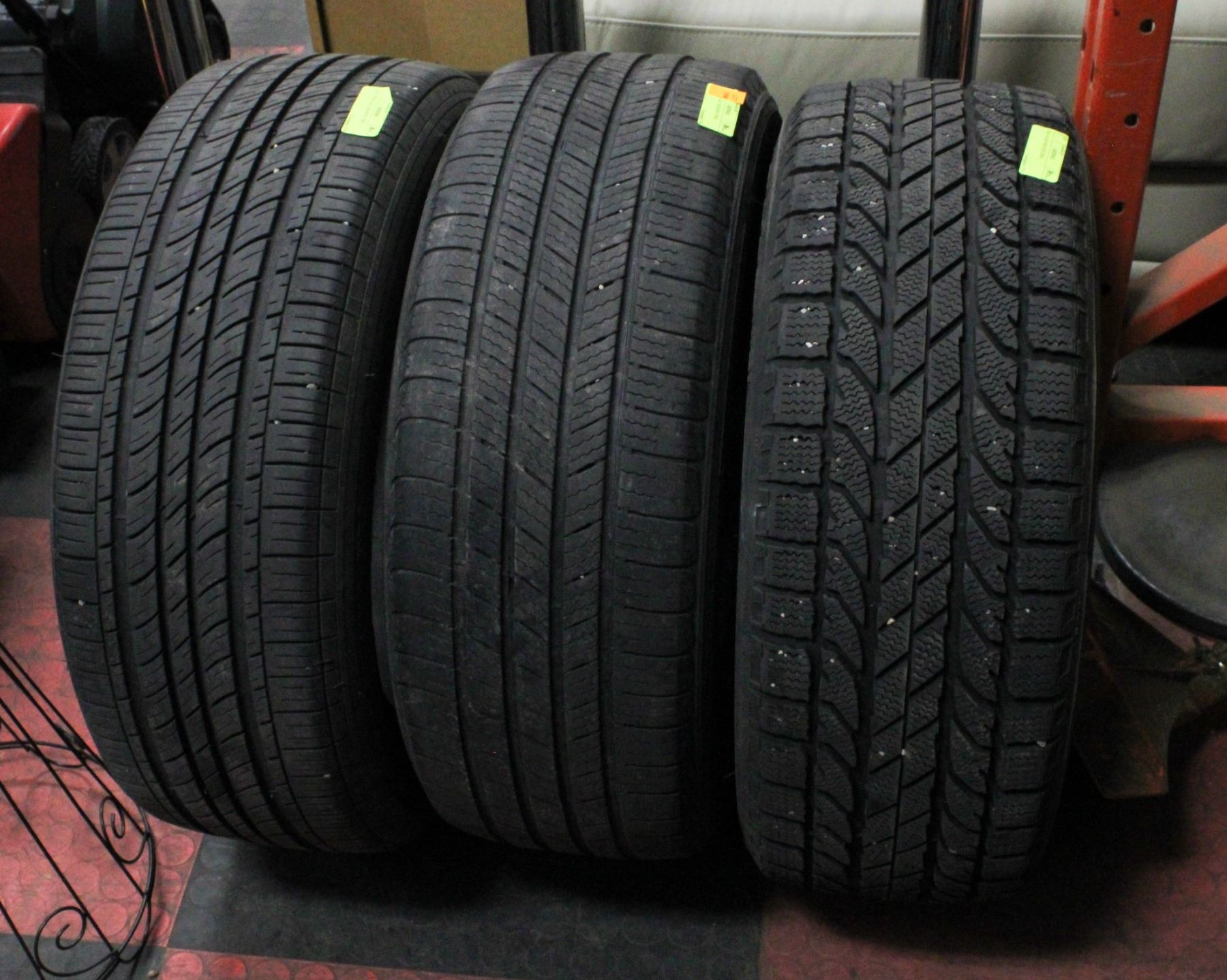 TIRES ONE HAS CRACKS AND LOW TREAD.