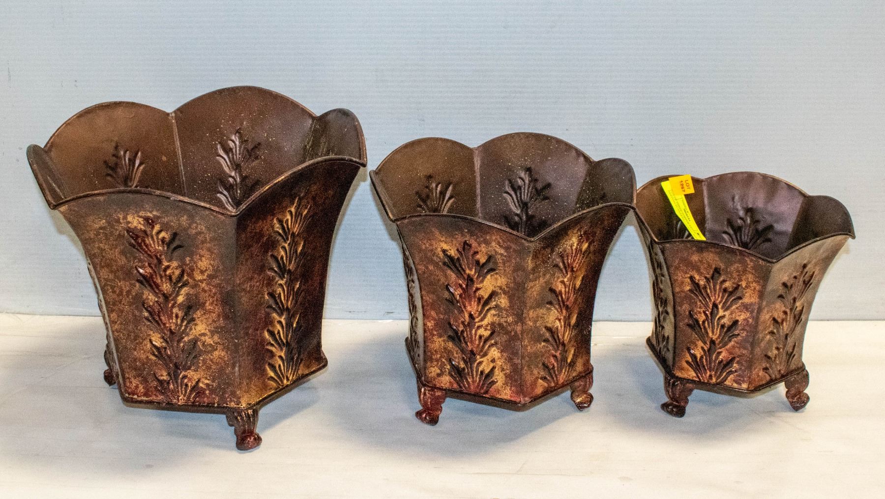 LOT OF THREE COPPER STYLE NESTING PLANTERS