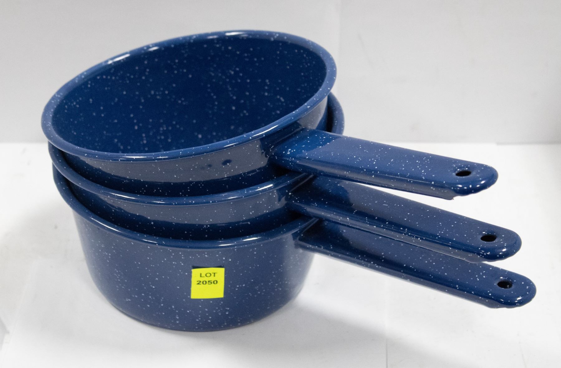 LOT OF THREE ENAMEL CAMPING SAUCE POTS