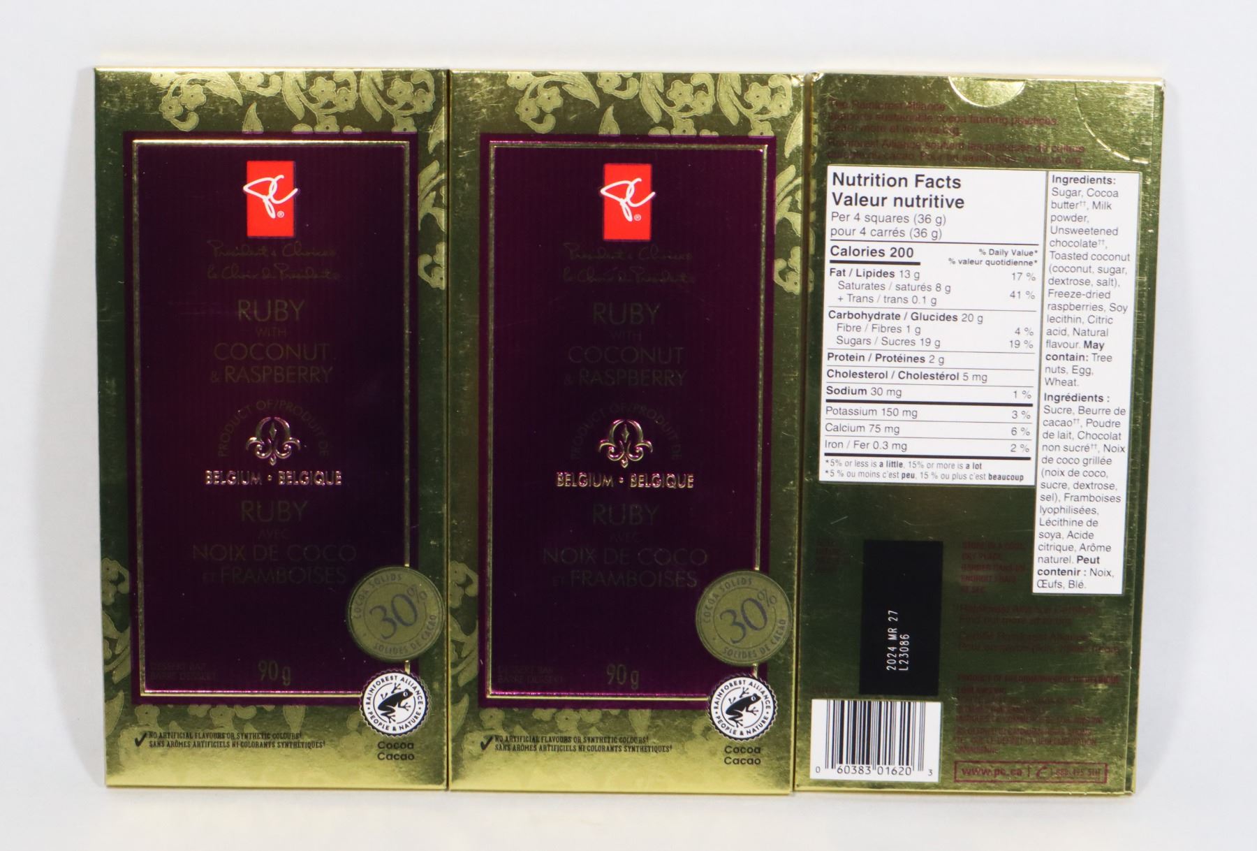 PRODUCT OF BELGIUM CHOCOLATE BARS 30% COCO. BEST BEFORE MARCH 27 2024