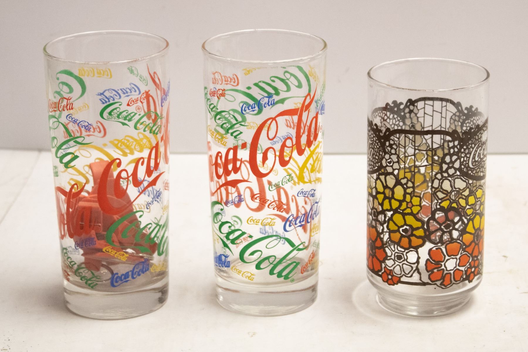 LOT OF THREE VINTAGE COKE TUMBLER GLASSES