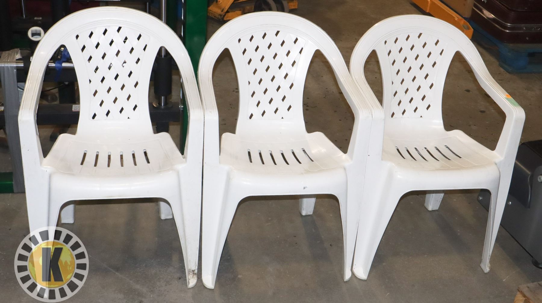 LOT OF THREE WHITE PLASTIC LAWN CHAIR