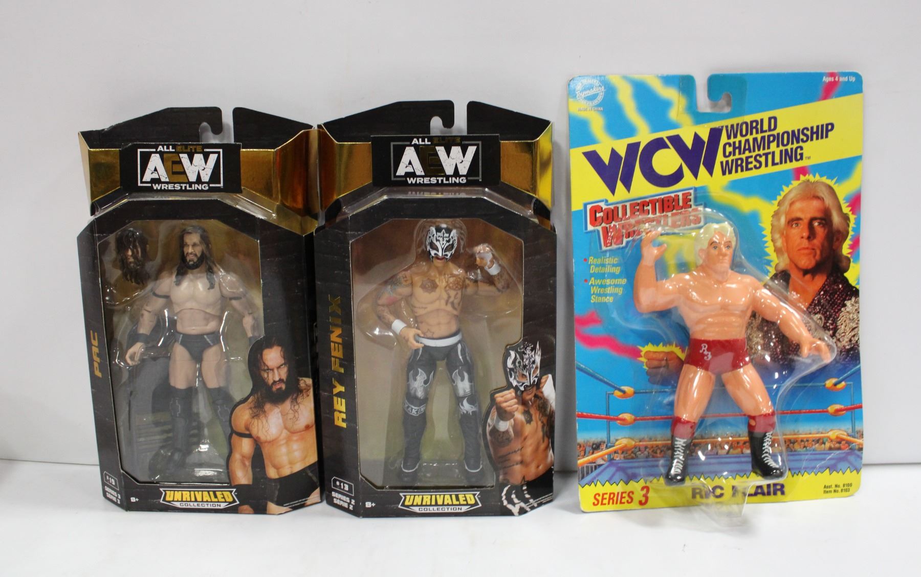 LOT OF THREE WRESTLING FIGURES : REY FENIX, PAC &