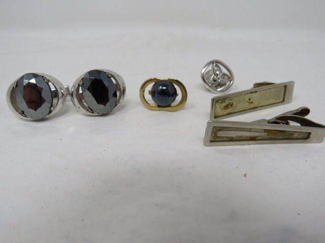 LOT OF TIECLIPS, CUFF LINKS, ETC (CUFFLINKS ARE LIKE ALASKA BLACK DIAMOND)