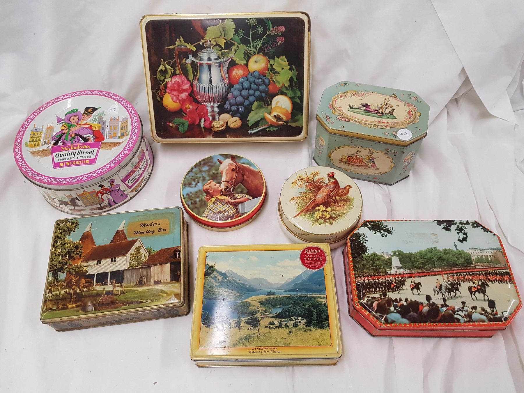 LOT OF TINS, MOSTLY TOFFEE, VINTAGE