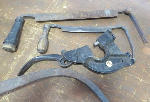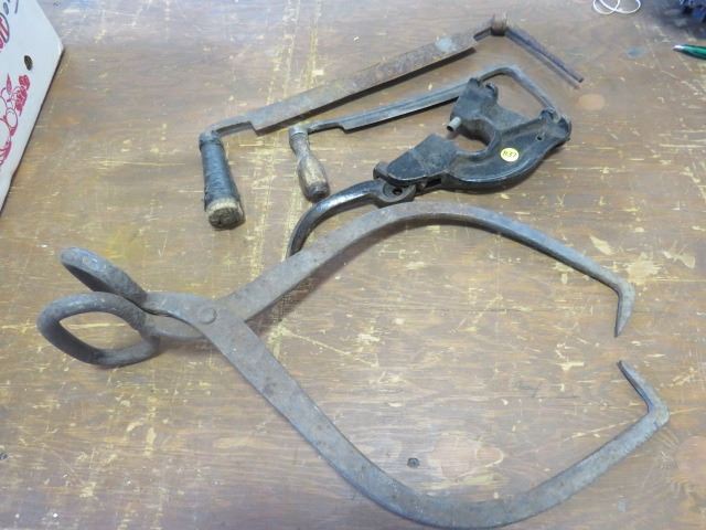 LOT OF TOOLS (VINTAGE) *DRAW KNIFE, RIVETER, HOOK,ETC)
