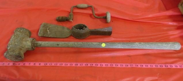 LOT OF TOOLS (VINTAGE) *SLEDGE HAMMER, GRUB AND DRILL*