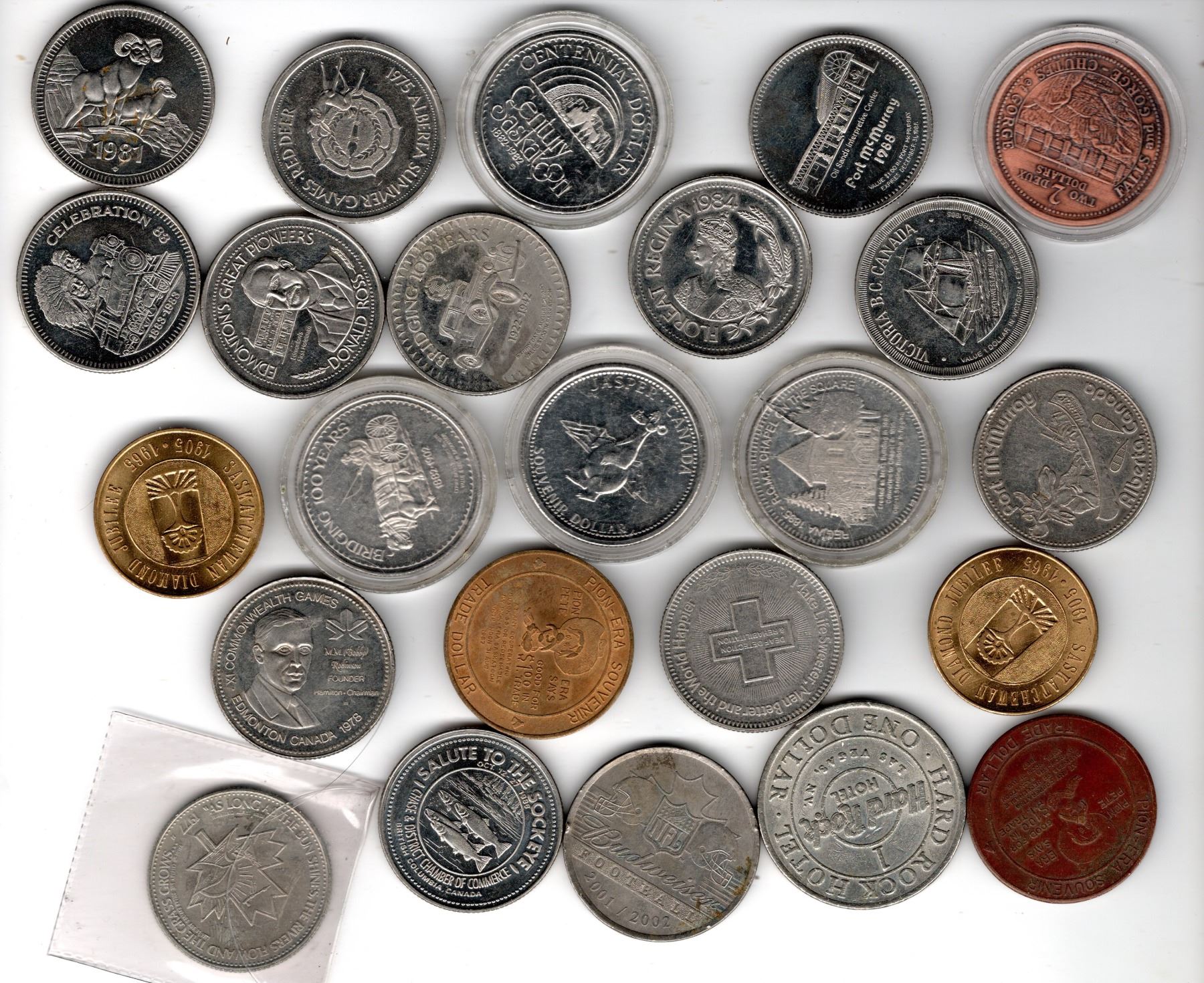 LOT OF TRADE DOLLARS AND OTHER TOKENS