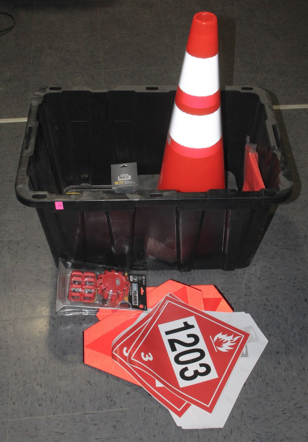 LOT OF TRAFFIC SAFETY ITEMS INCLUDING LED FLARES,