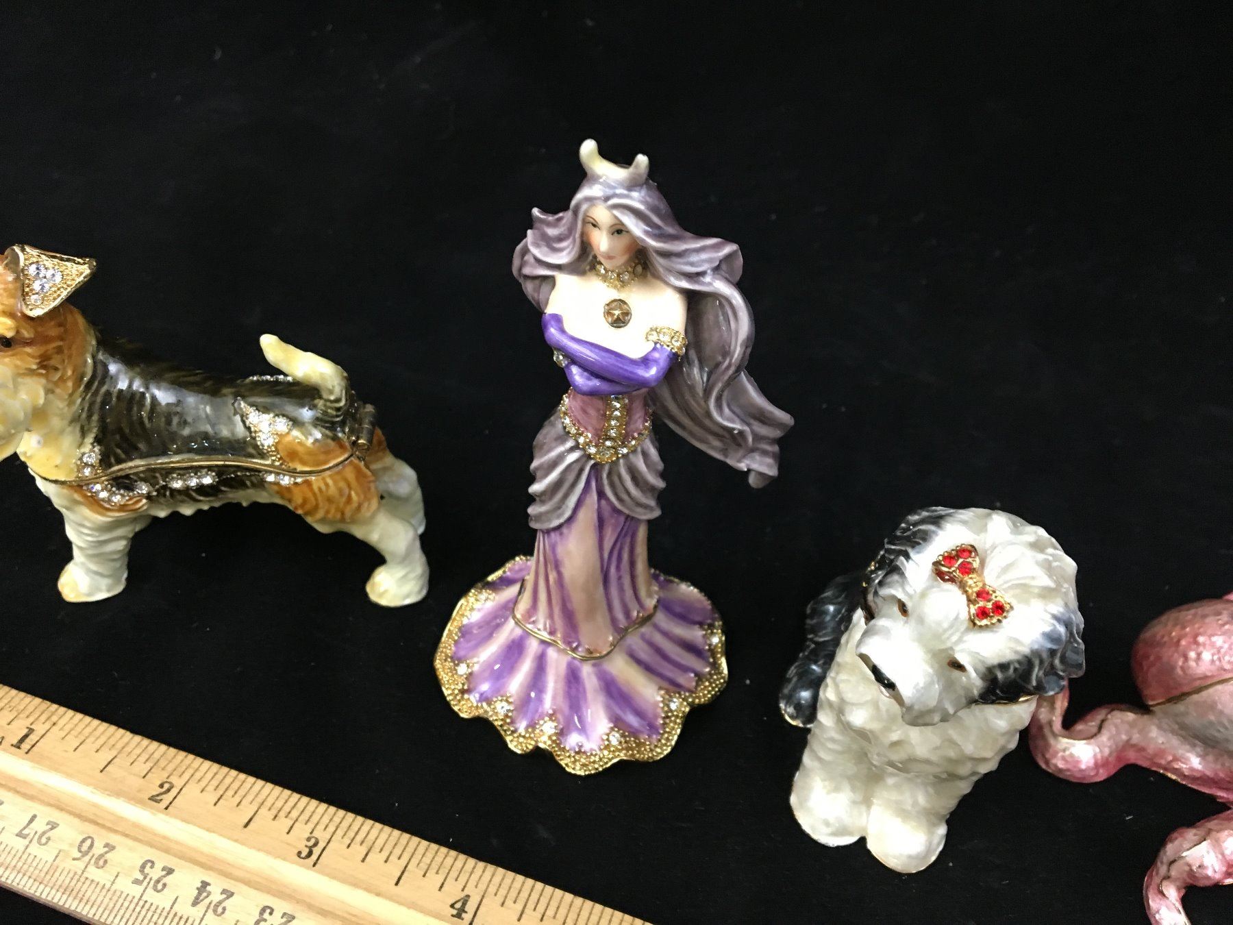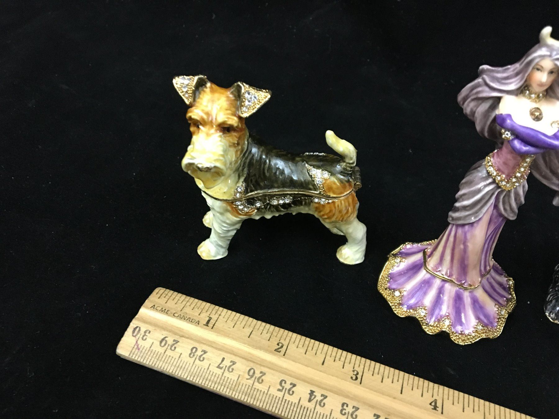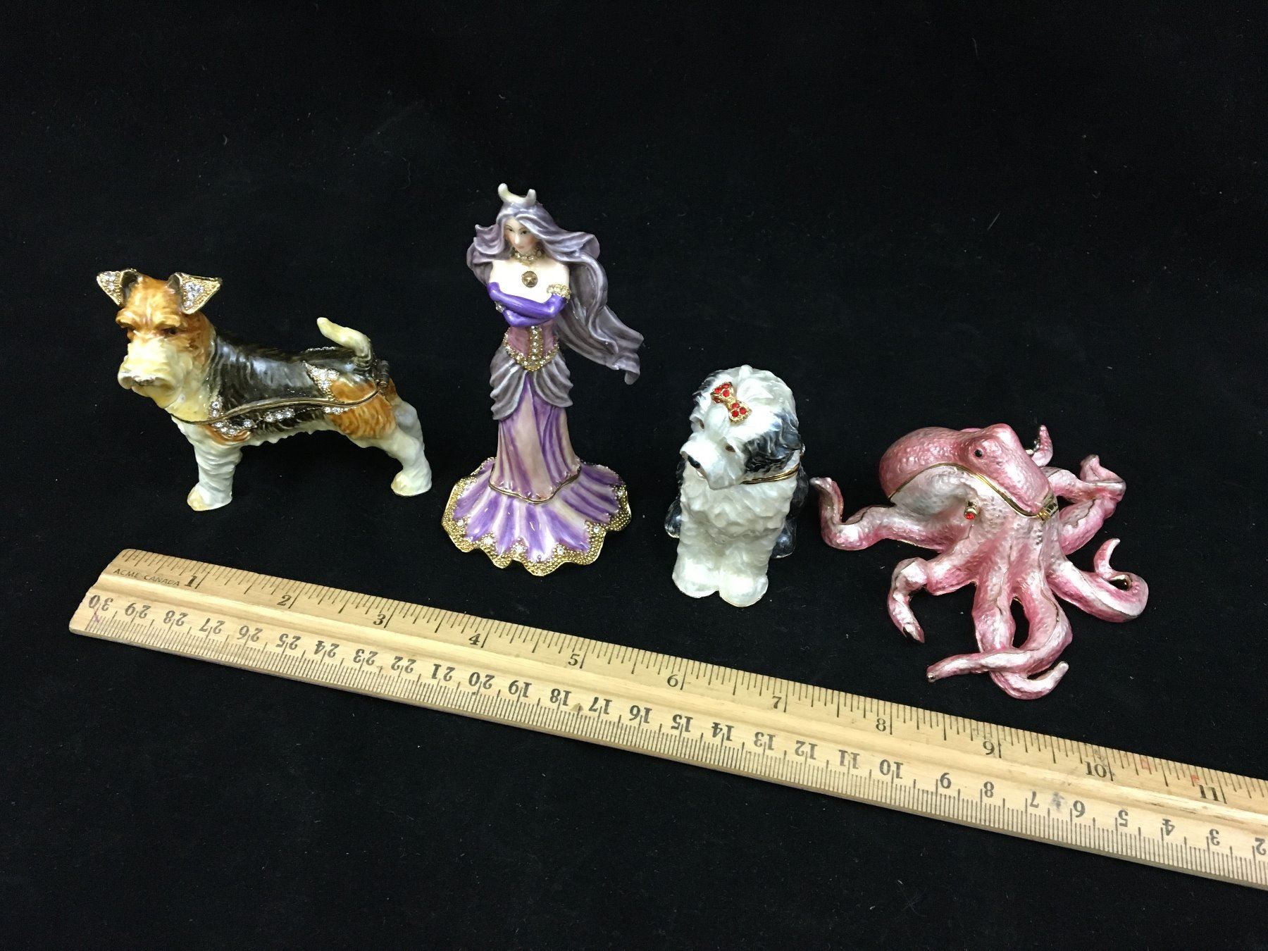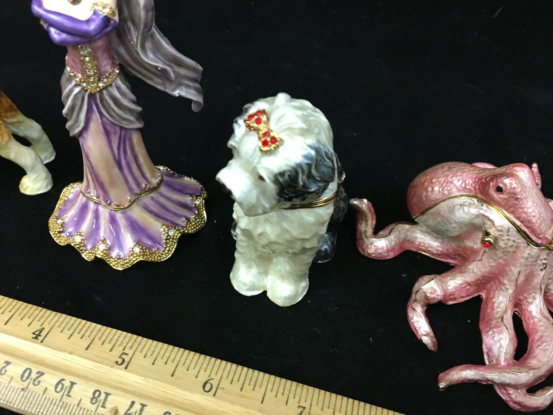 LOT OF TRINKET BOX FIGURINES (OCTOPUS, GIRL, DOGS)