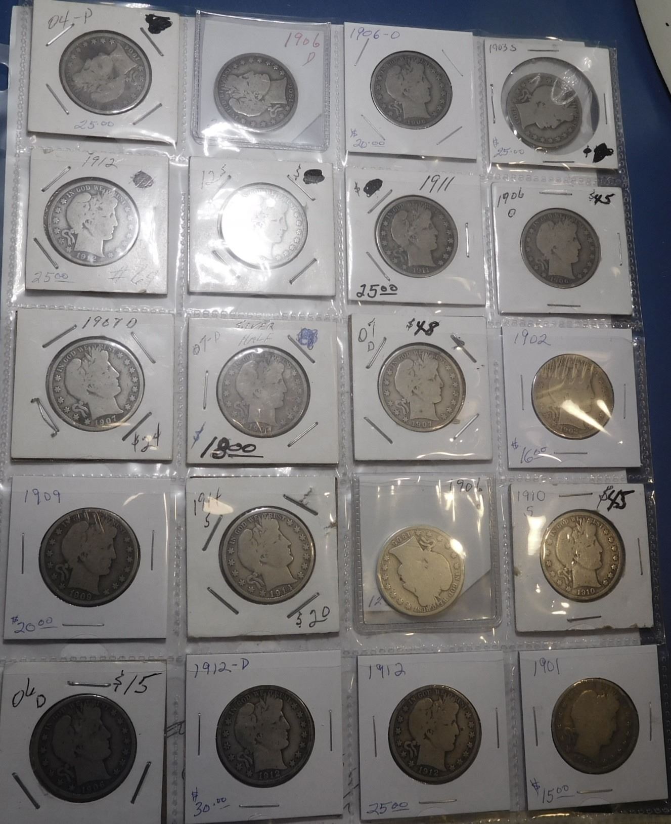 LOT OF TWENTY MIXED DATE BARBER HALF DOLLARS G/VG