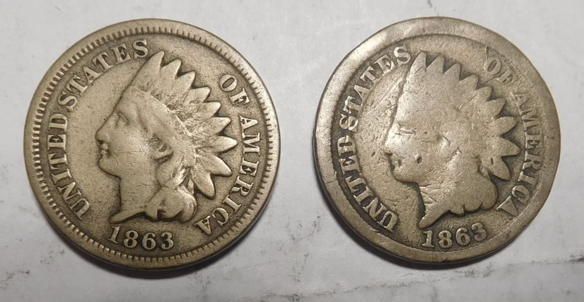 LOT OF TWO 1862 INDIAN HEAD CENTS G/VG (ONE BENT)