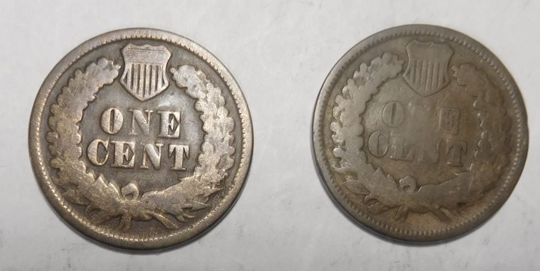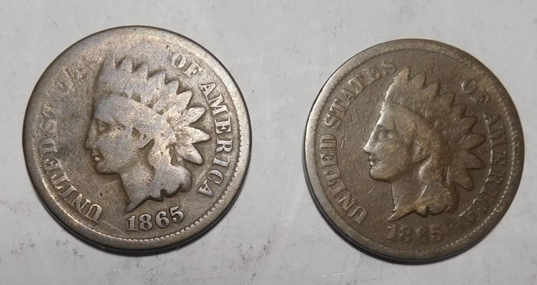 LOT OF TWO 1865 INDIAN HEAD CENTS GOOD (2 COINS)