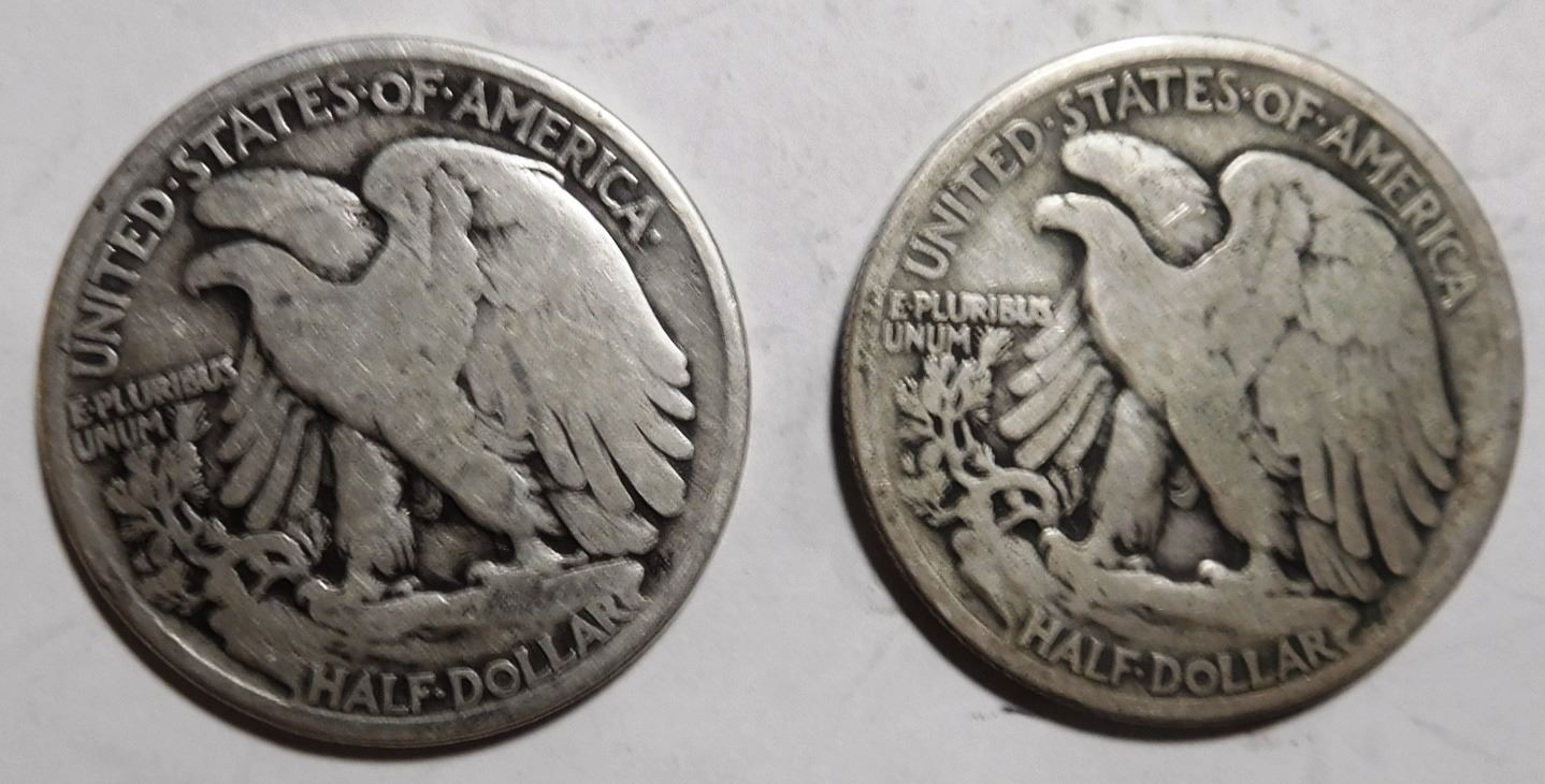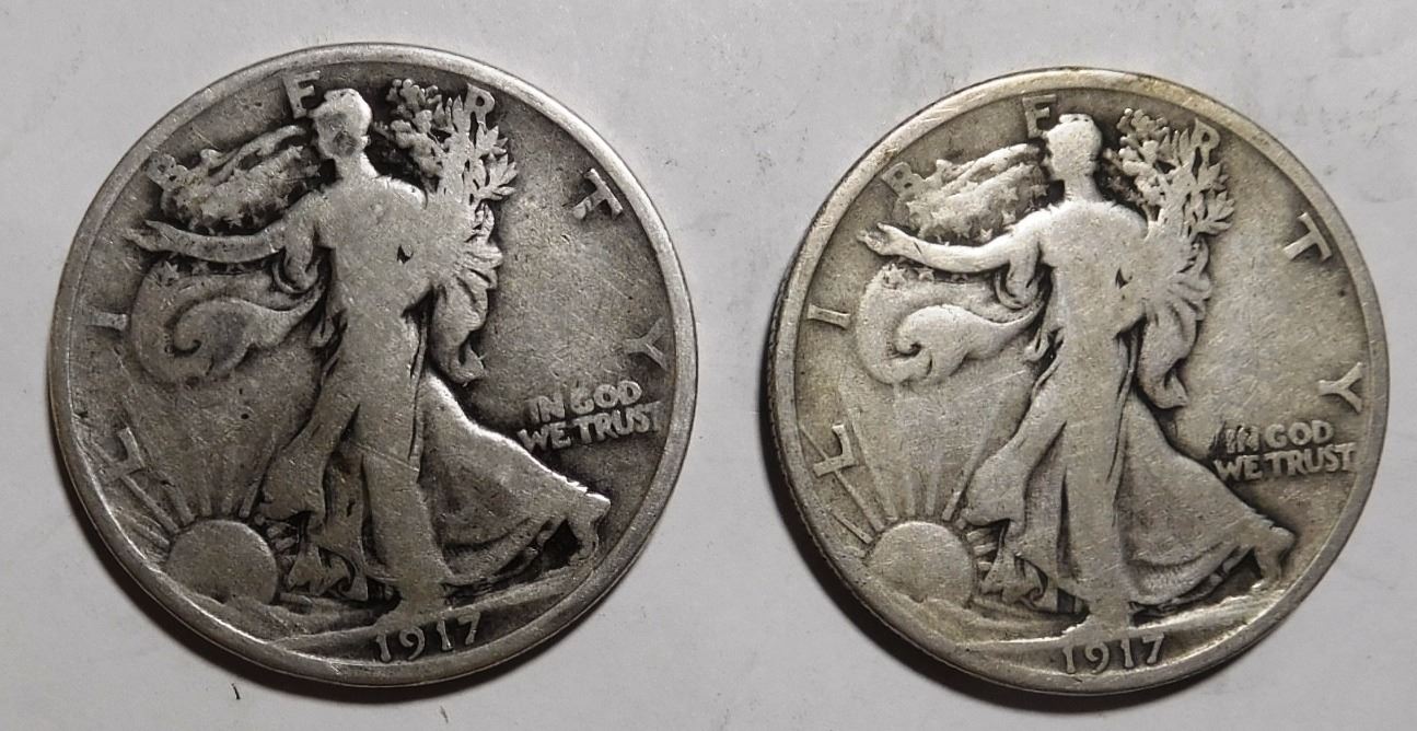LOT OF TWO 1917 WALKING LIBERTY HALF DOLLARS VG (2 COINS)