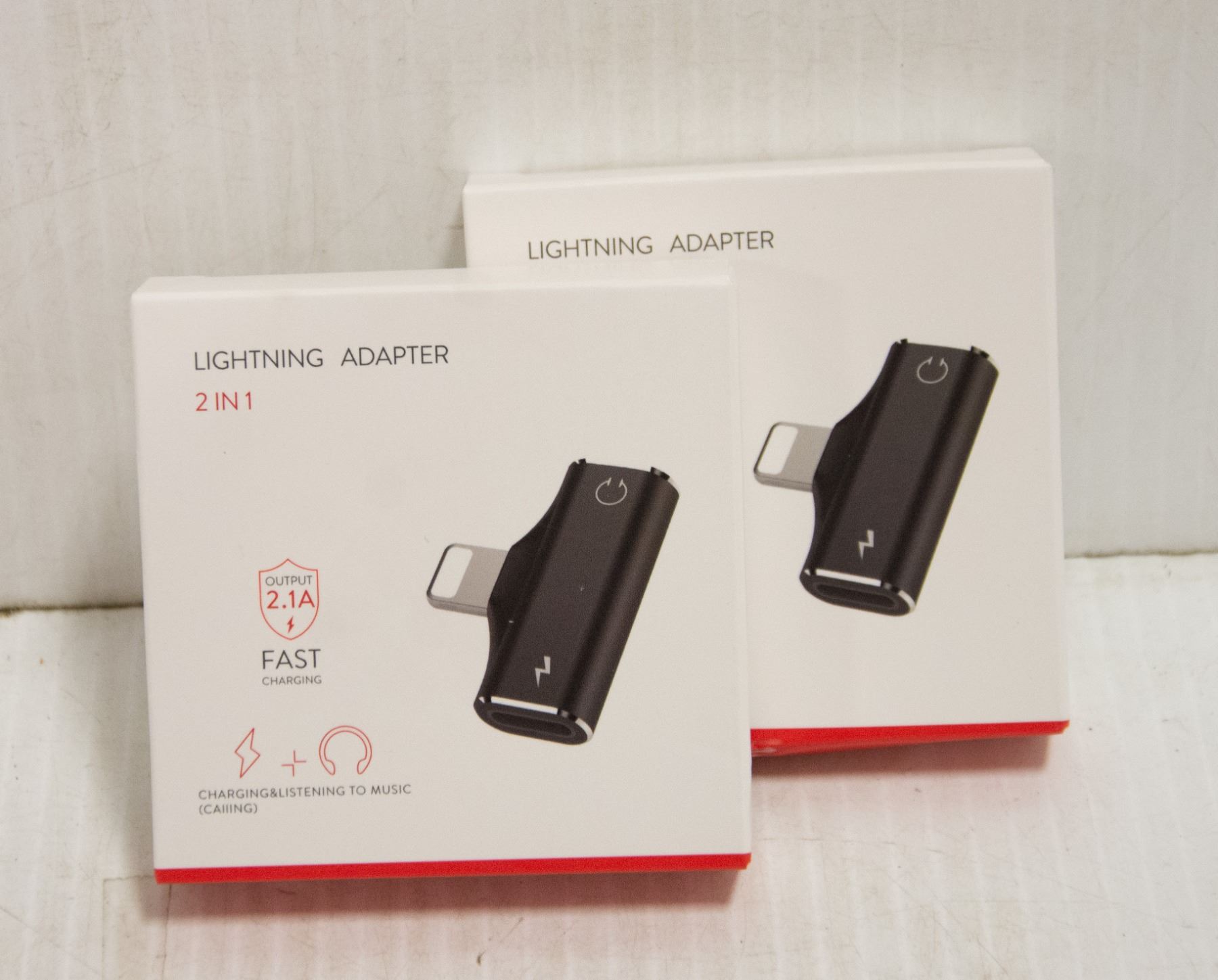 LOT OF TWO 2-IN-1 IPHONE ADAPTORS: ALLOWS YOU TO