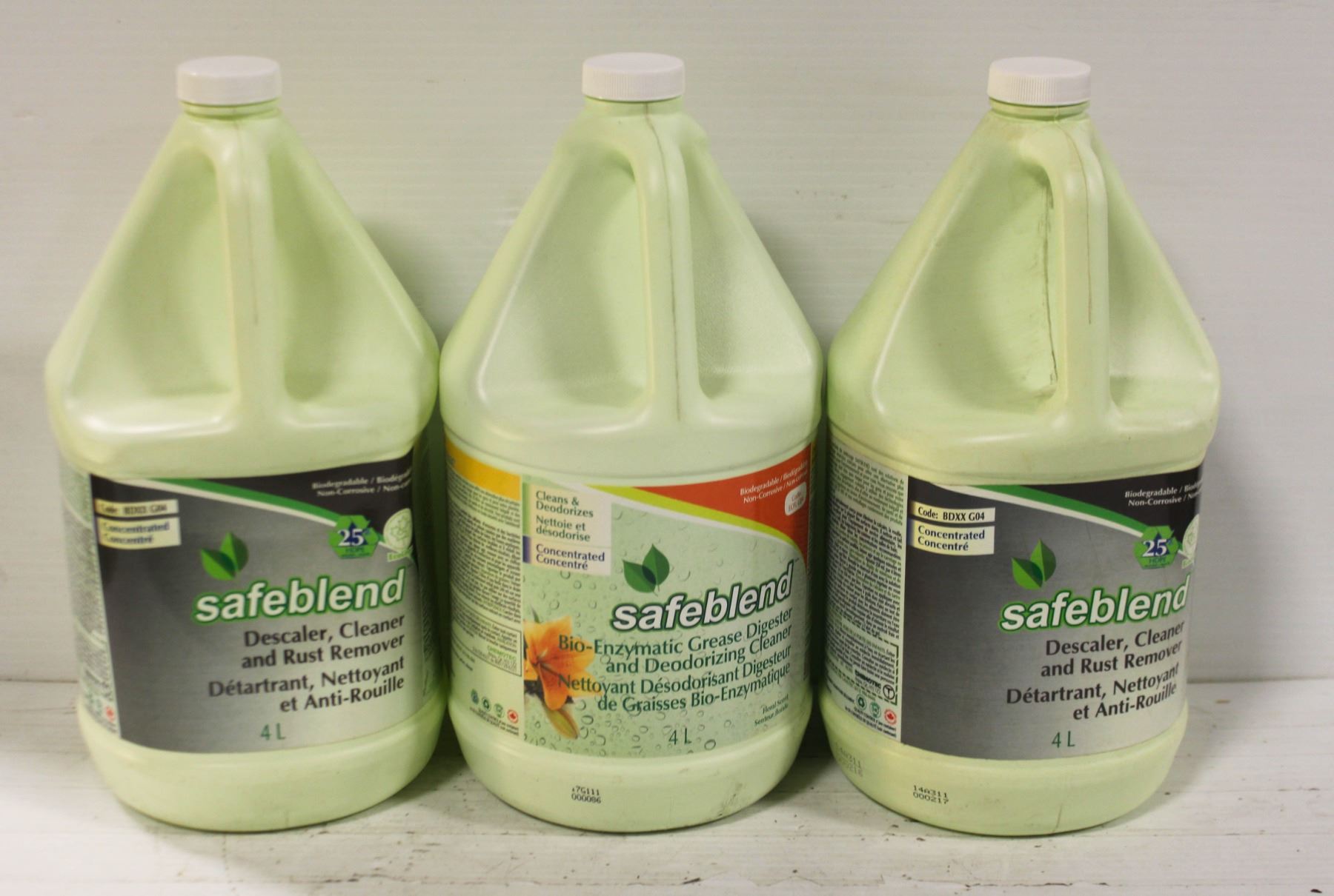 CLEANER, & RUST REMOVE W/ ONE 4L BOTTLE OF SAFEBLEND BIO-ENZYMATIC GREASE DIGESTER & DEODOURIZING CLEANER. ECFL G04, BDXX G04**ALL ITEMS MUST BE REMOVED BY 5PM MONDAY, OCTOBER 2ND, 2023. ALL REMAINING ITEMS WILL BE SUBJECT TO A $6.00 PER DAY STORAGE CHARGE. ANY ITEMS REMAINING AFTER MONDAY, OCTOBER 16TH, 2023 WILL BE CONSIDERED FORFEITED. NO REFUNDS WILL BE ISSUED FOR FORFEITED ITEMS.** TO SCHEDULE A PICK UP APPOINTMENT CLICK HERE