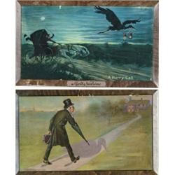 LOT OF TWO ANHEUSER-BUSCH SIGNS. Two beveled edge tin over cardboard Malt Nutrine signs. Images of physicians en route to their patients. Lithoed by The American Artworks, circa 1915. SIZE: 12 1/2” w. x 7 1/2” h. CONDITION: Good to very good with a few minor surface scuffs and scrapes. 1-3444 (200-400)